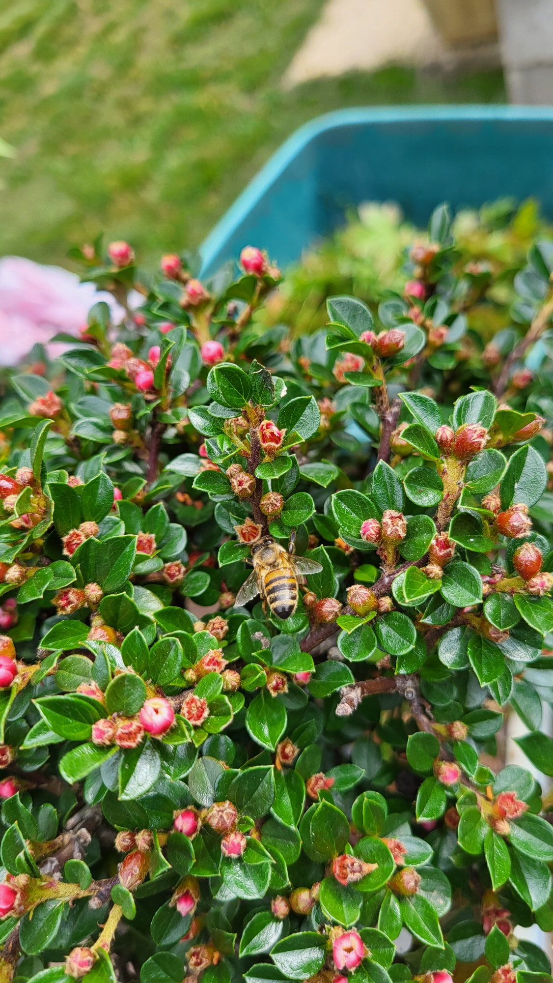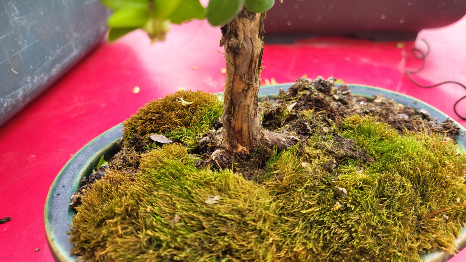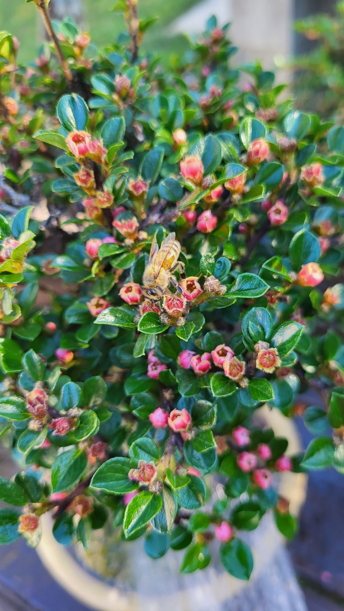 Un petit pommier il me semble, le pot est atypique mais l’ensemble me plait.