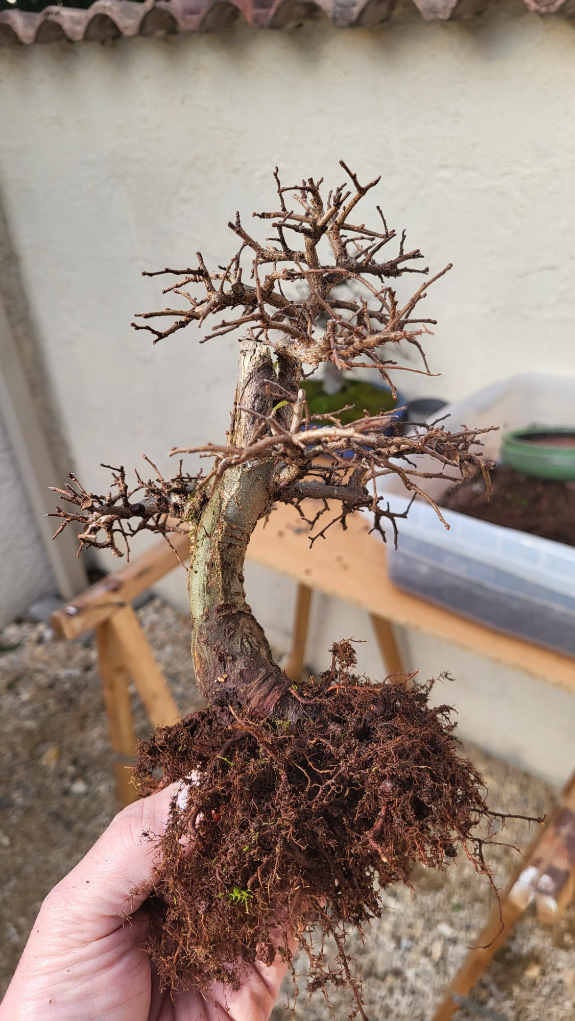 le mélèze est bien mature, ramifié, tu pourrais p’tet le mettre dans un pot de Bonsai ?