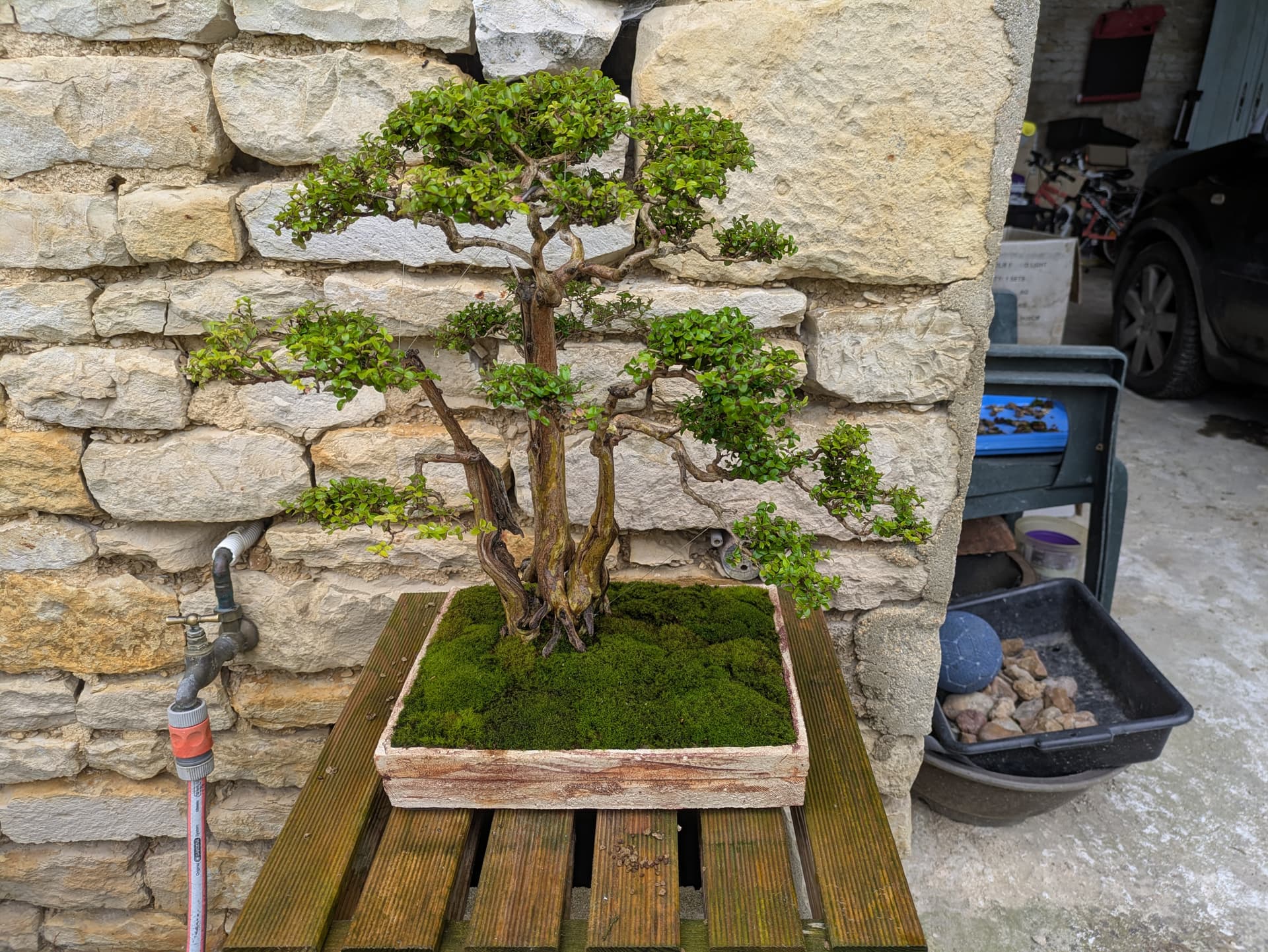 J’essayerai de vous faire une plus belles qualités de photos pour mettre plus en valeur l’arbre dans le pot, car là les photos sont assez terne au final . Peut être aussi que le vert soutenu du lonicira en pleine saison donnera plus de cachet à l’ensemble … Bref, j’essaye de me rassurer ![]()