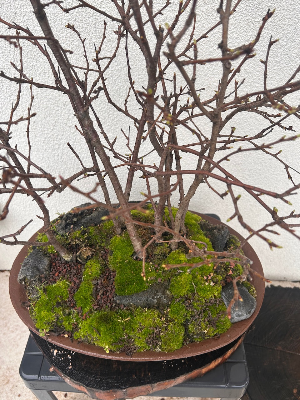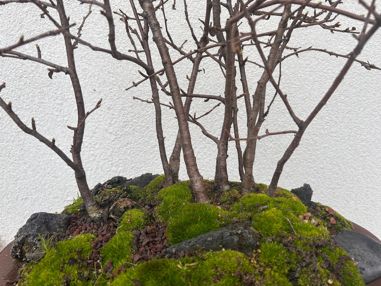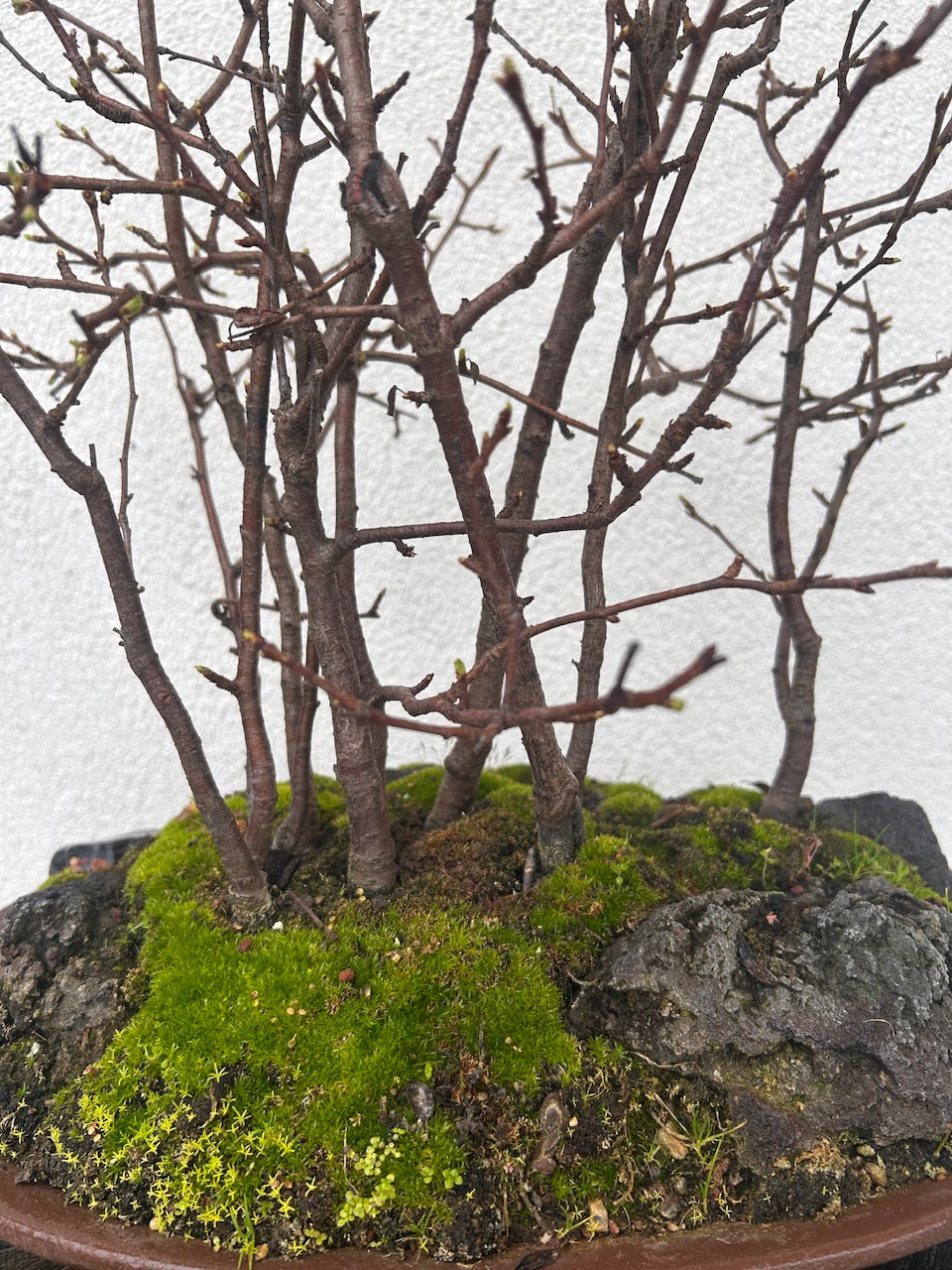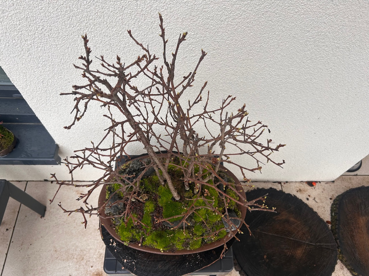 Voici la forêt ce matin, elle ne se réveille pas encore mais l’on voit les bourgeons, mais il est prévu très doux semaine prochaine…, elle était sous serre depuis début janvier et les -11,5° et je l’a mettrai à nouveau en-dessous en cas de gel tardif, car il peut encore geler début mai ici dans le nord de l’Alsace.