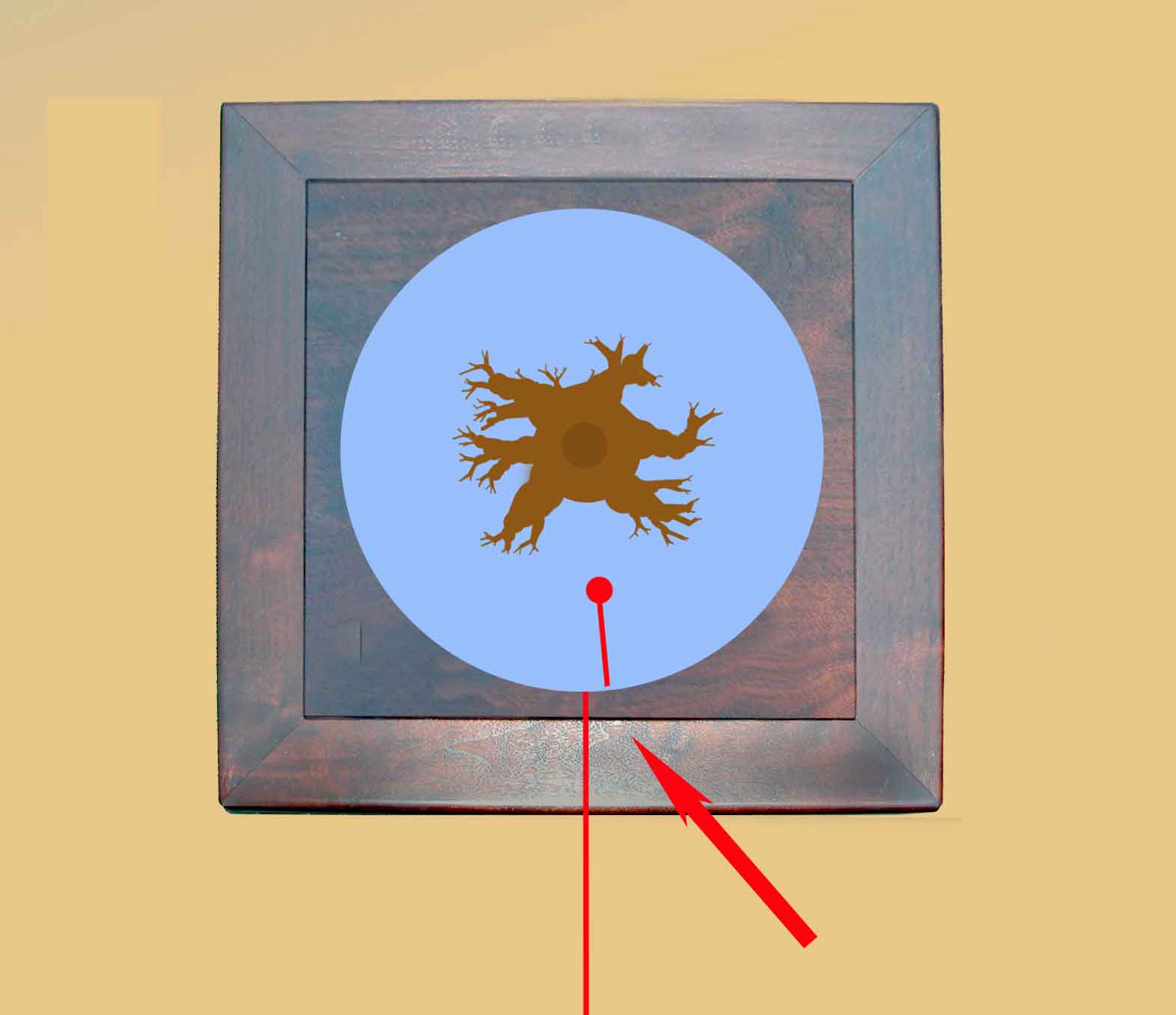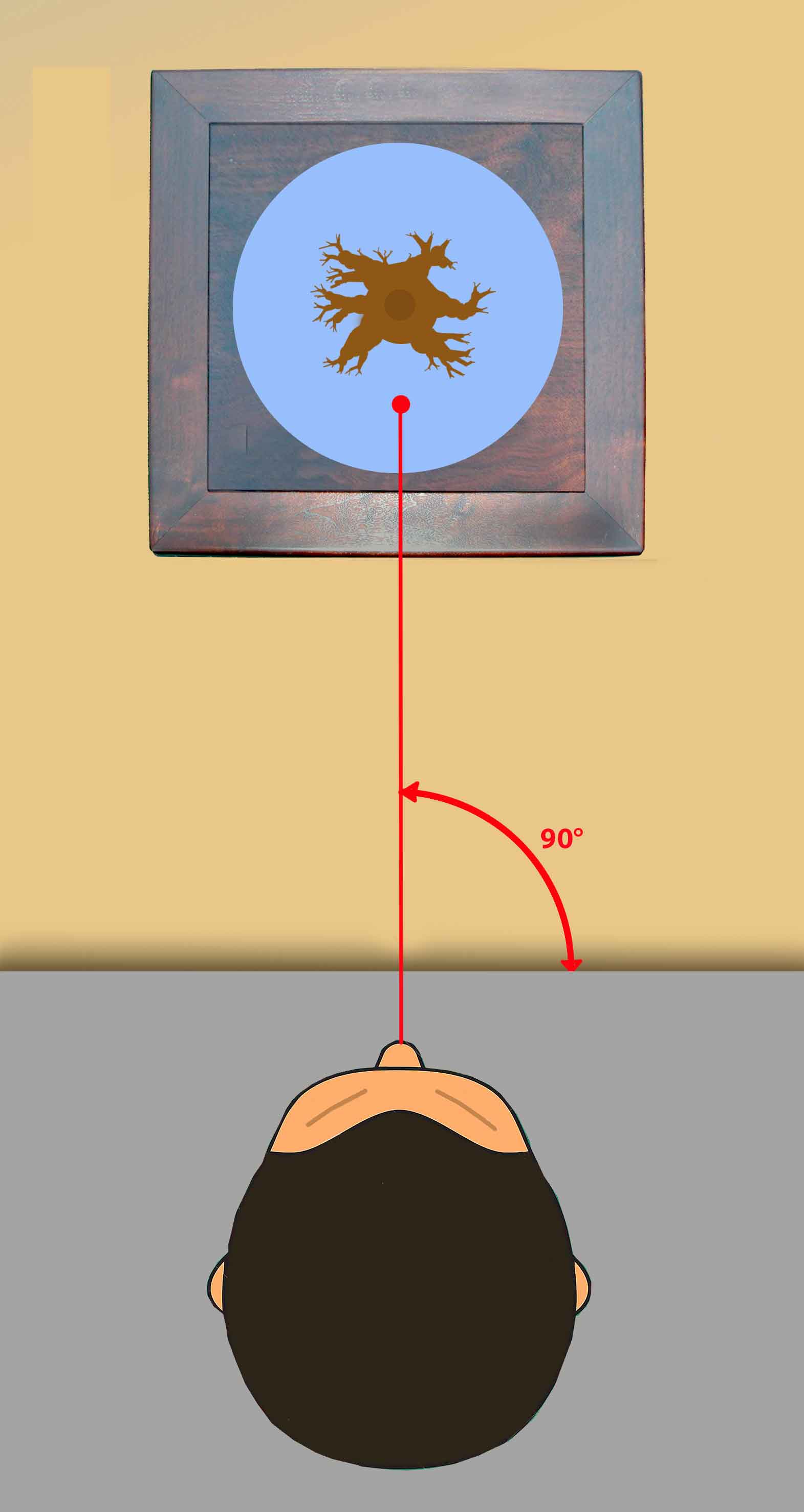 Si on tirait une ligne entre le point rouge marquant la face de l’arbre et le bord de la table qui reçoit la présentation elle serait exactement perpendiculaire soit à 90°.