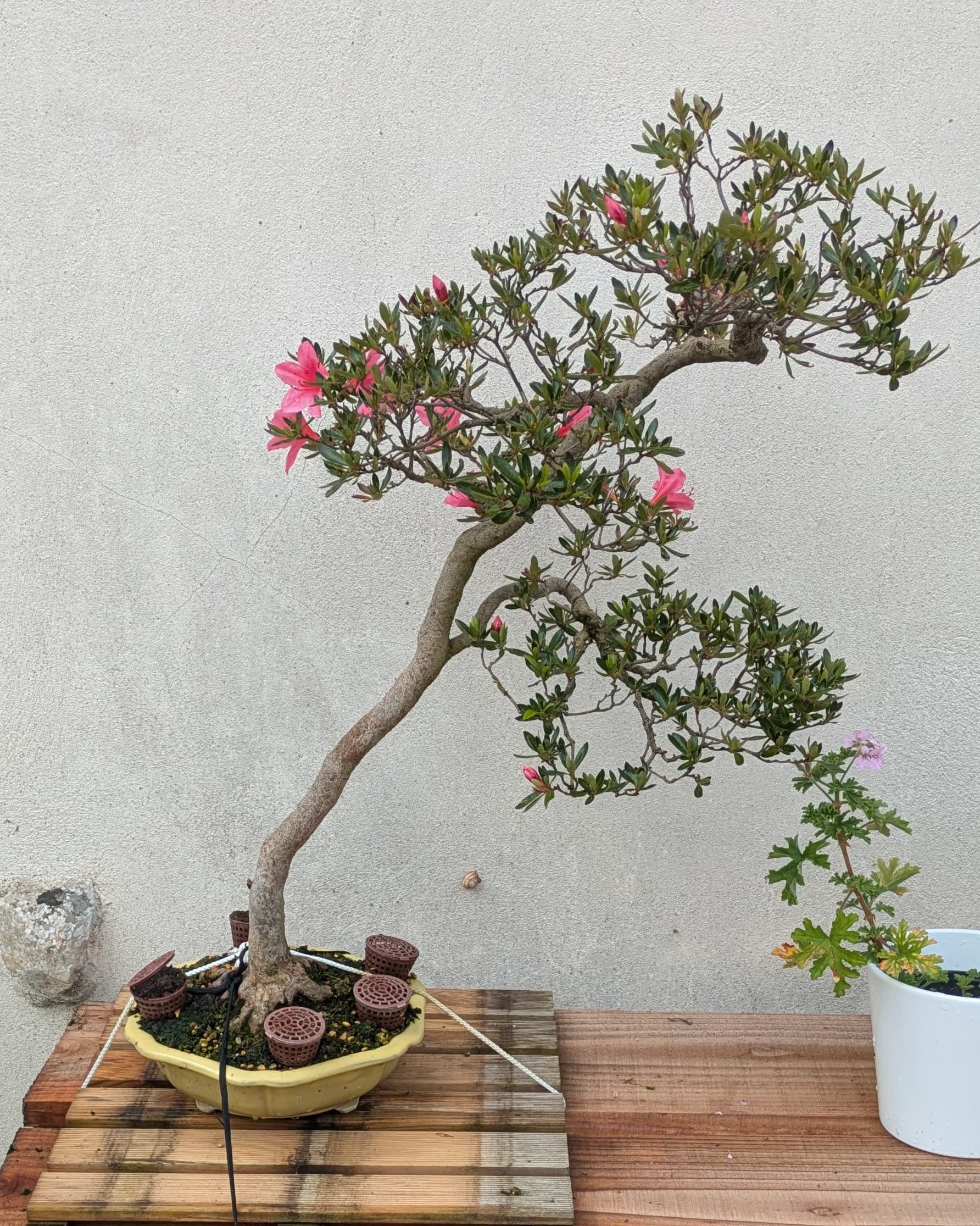Figure toi que moi aussi finalement, mais l’arbre sera allégé pour en faire un bunjin , peut etre même hauteur mais plus large de 2,3 ou 4 cm supplémentaire … à aviser dans le temps et selon ce que me proposera l’arbre sur son futur et ce que j’en ferai s’il survit une 1ere année chez moi … (je n’ai aucune expérience sur l"Azalée et ne sait en rien si cette espèce peut pousser chez moi) c’est un gros pari que je me lance avec cette espèce …
