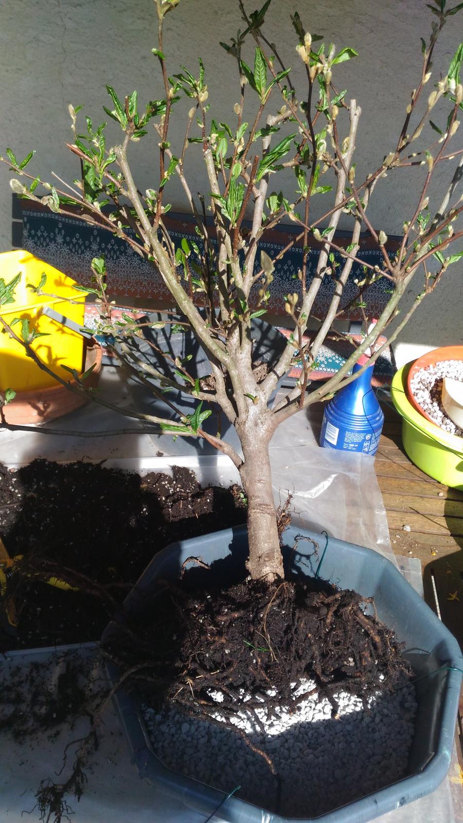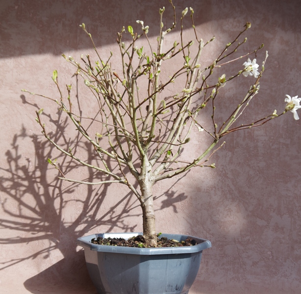 voici des nouvelles de mon magnolia. J'ai choisi d'attendre la fin de la floraison et rempotage dans du drainant avant le débourrage complet du feuillage. Pumice pure.