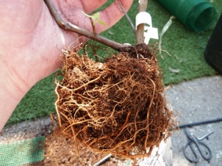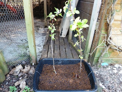 PS : regardez la photo 2 pour vous faire une idée de l’aspect des arbres. Sinon voici une autre photo (mais ne soyez pas trop dur sur le rempotage c’est le premier que je fais ! Je les ai mis à 2 dans un pot de culture, à l’abri du vent et mi-ombre) :