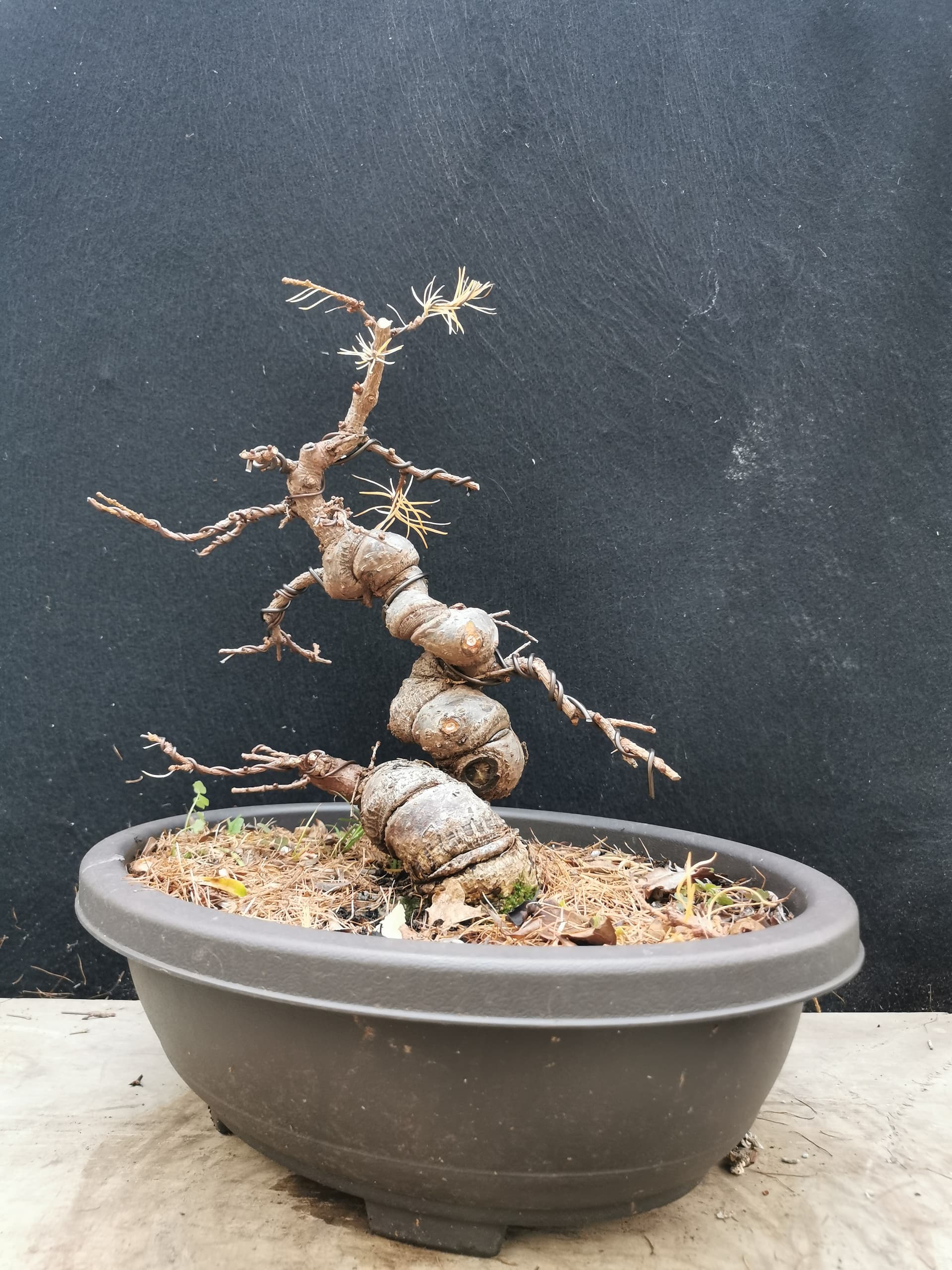 Je vois bien ce dont tu parles, encore que sur ce sujet je pense que le nébari est plus large que le départ du tronc (j’ai sondé le substrat), et même si le nébari est vraiment dégueu je pourrai toujours faire une marcotte, le mélèze ayant quand même la faculté de se marcotter plus ou moins facilement.