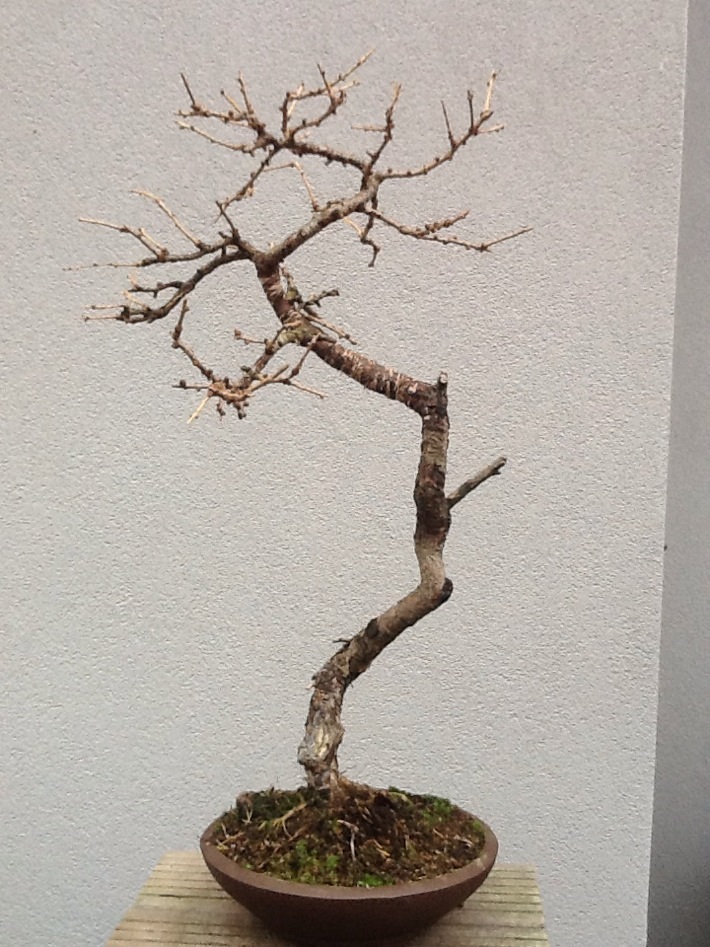 Je supprime la tige morte, une torsion du tronc au niveau de la première branche, et moins de torsion au niveau de la deuxième, je relève la troisième.