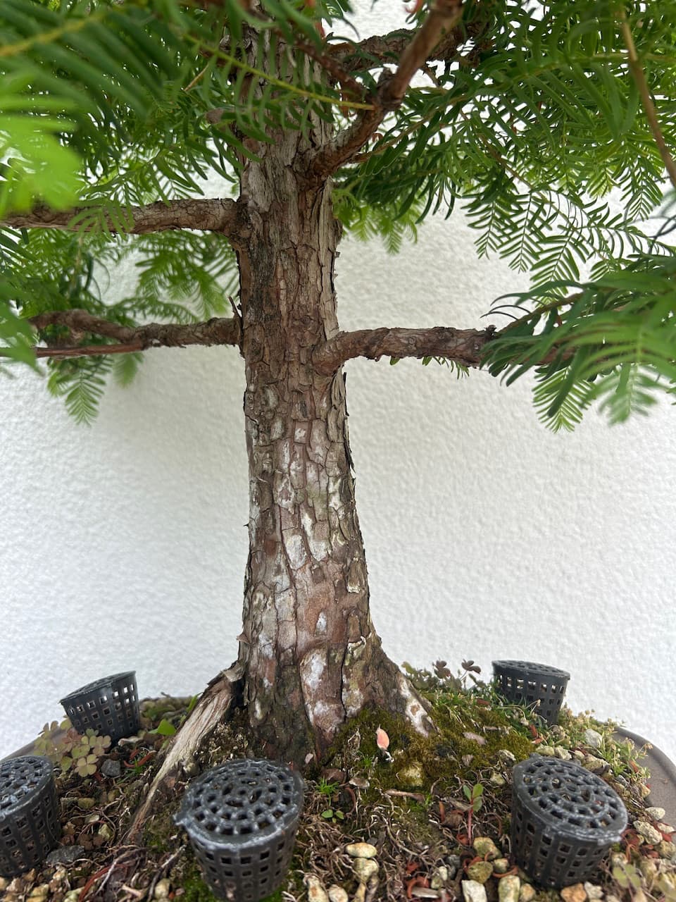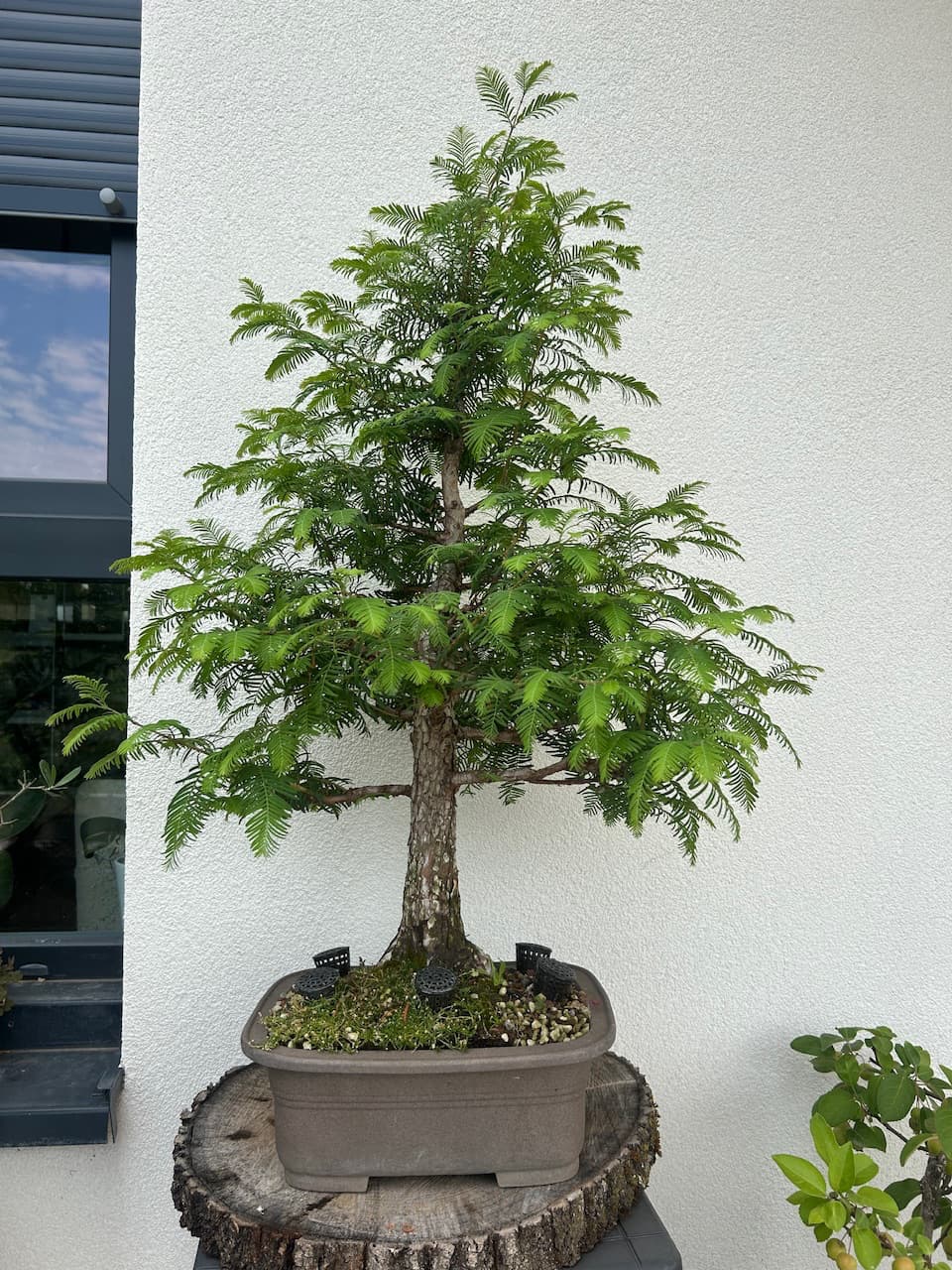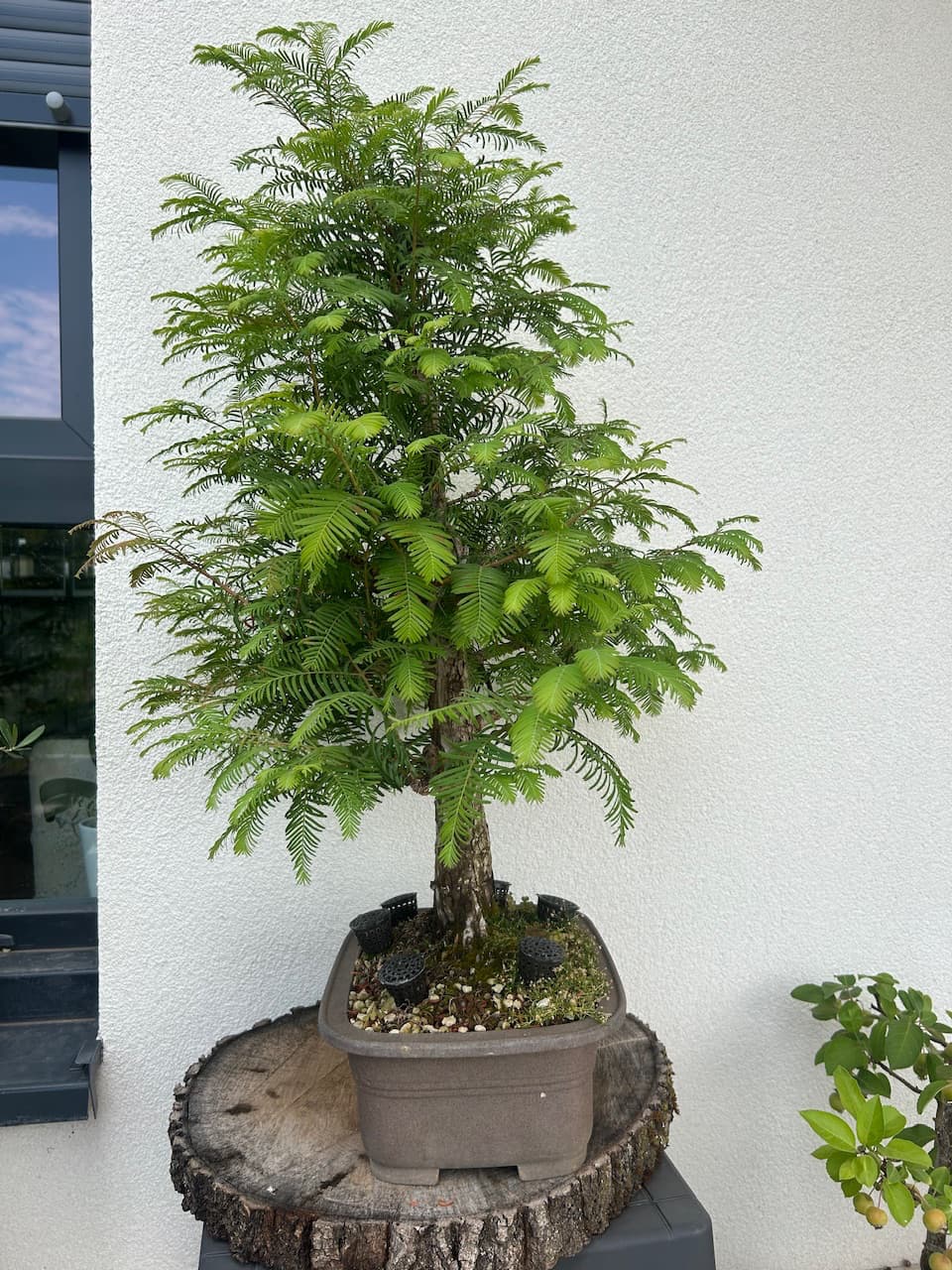 Voilà je vous présente mon Metasequoia acheté samedi dernier sur LBC, à un connaisseur qui a de très beaux sujets. Il va exposer d’ici 3 ans un Bonsaï à l’expo de Genk en Belgique, il est encore en train de le travailler.