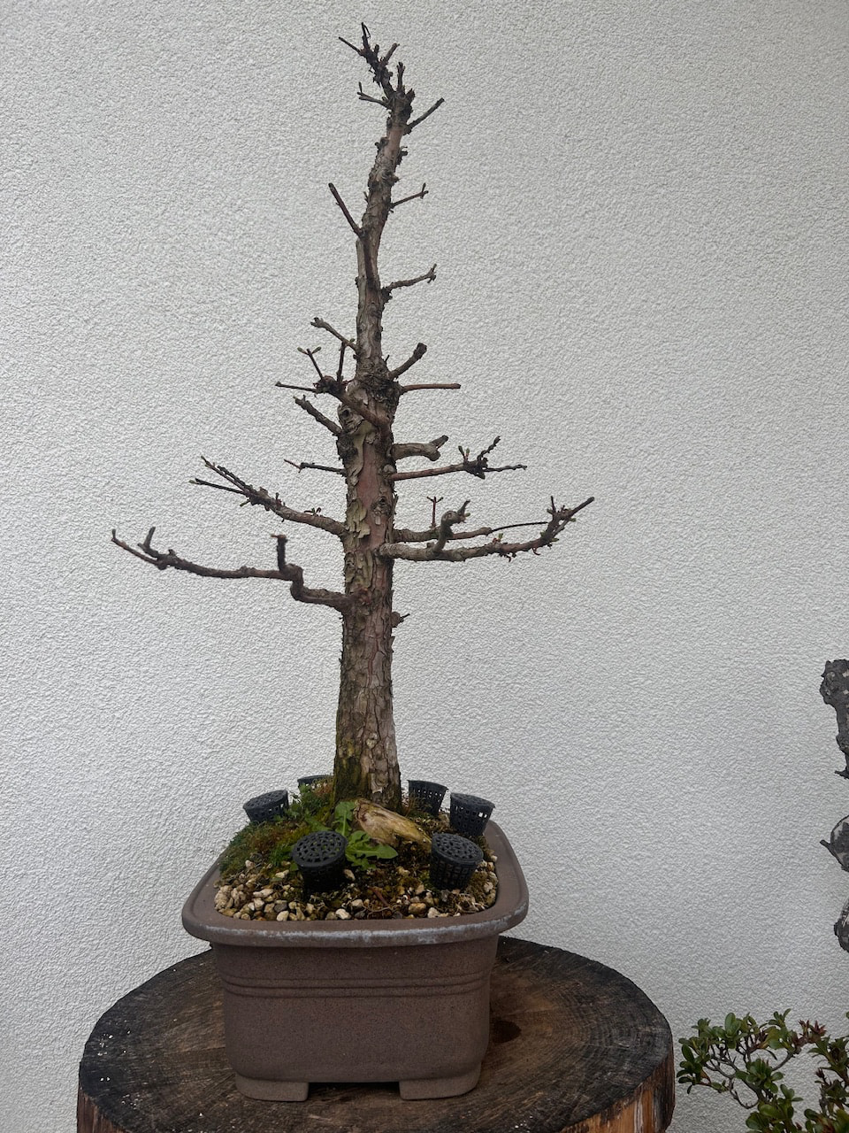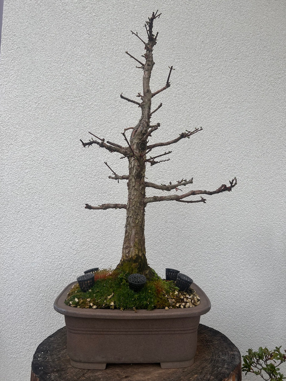 Il est rempoté dans un mélange Pumice/Akadama si je ne me trompe pas, dernier rempotage effectué en 2022 mais vu comme il est encore très drainant je peux encore attendre vu qu’il a été ligaturé à l’automne, le vendeur m’a conseillé de ne le rempoter qu’en 2026.