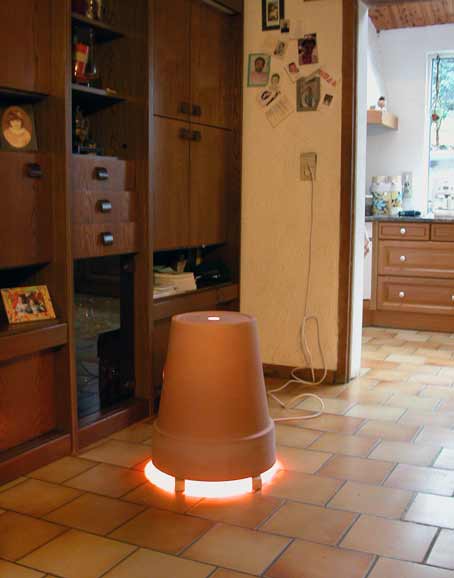 Le trou d’évacuation d’eau permet une sortie de l’air chaud sans danger puisque vers le haut, cet air chaud réchauffe également la paroi du pot en terre cuite.