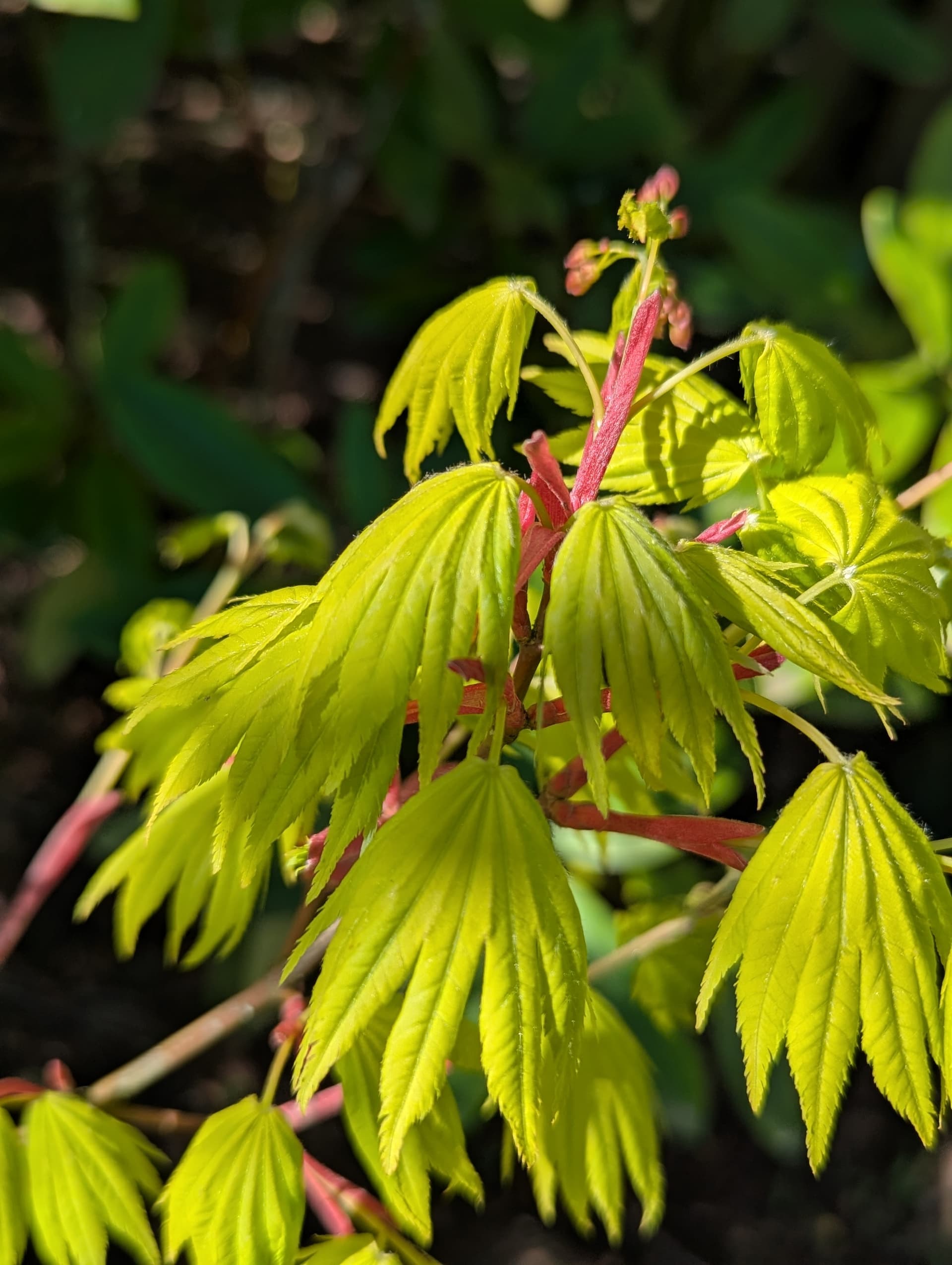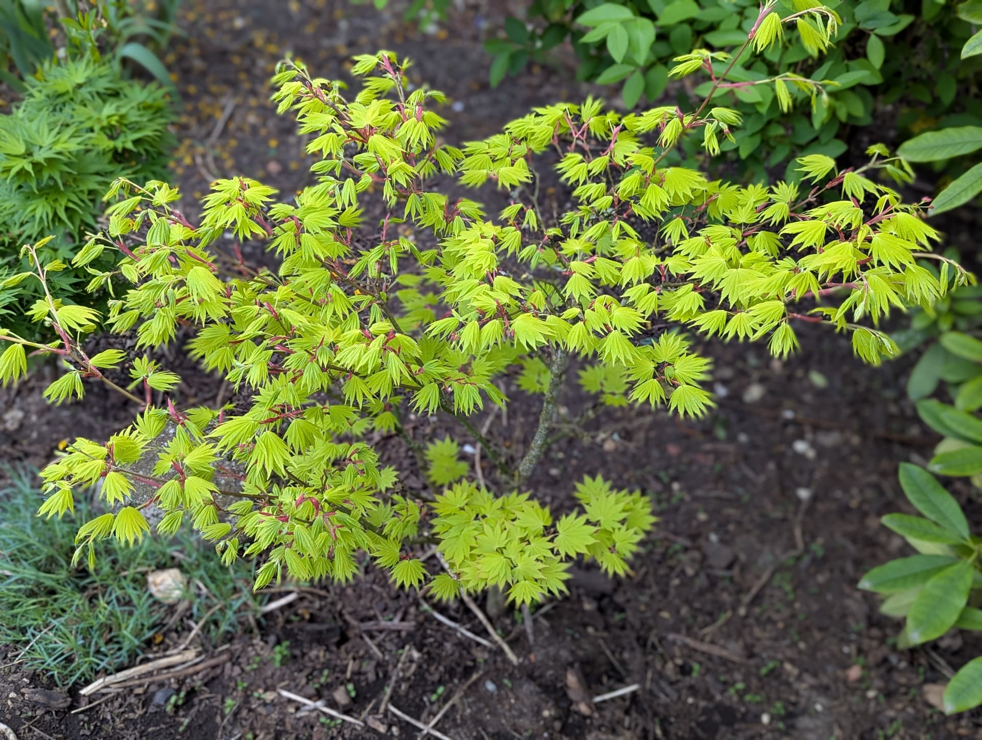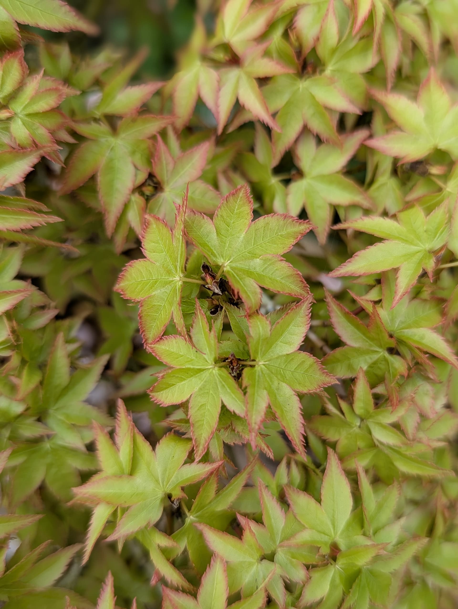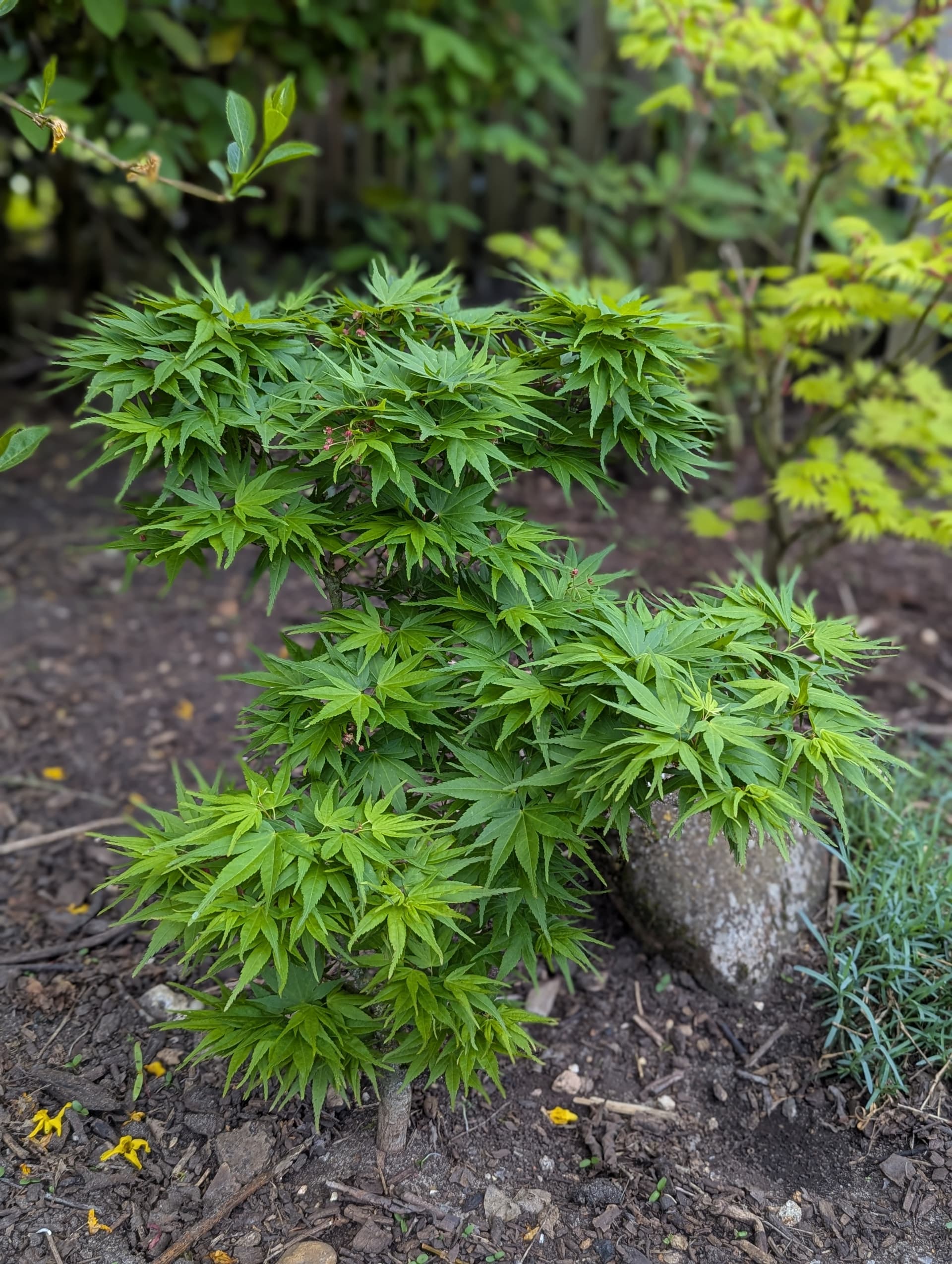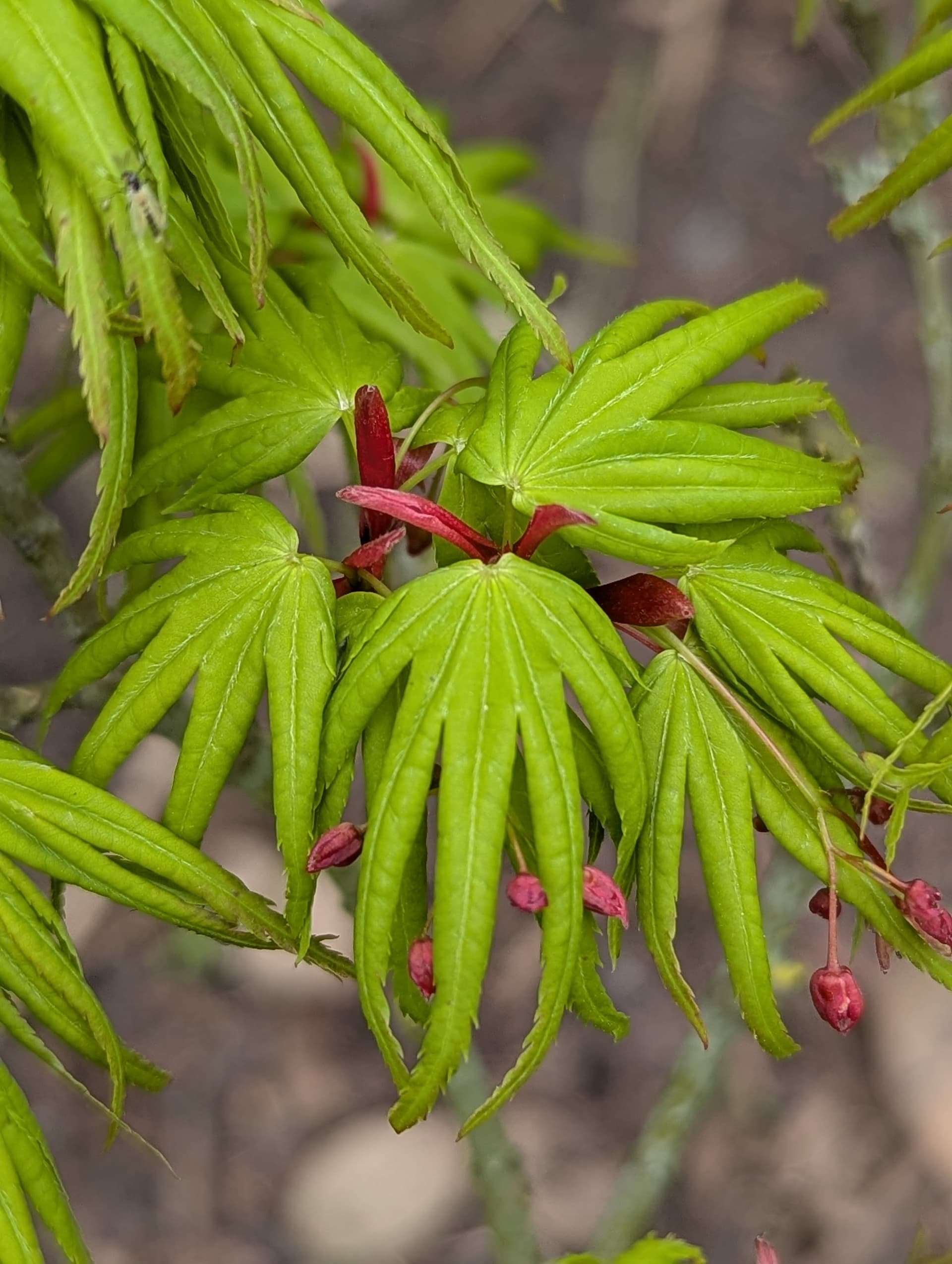 , tout comme le Sango Kaku , un des mikawa et le Koto no ito. Le bloodgood ,Le beni chidori et le shigarami (tjr pas débourré celui la!) sont en gros pots. Des boutures de beni chidori sont en cours , et je penses faire une marcotte du Sango Kaku prochainement ![]()