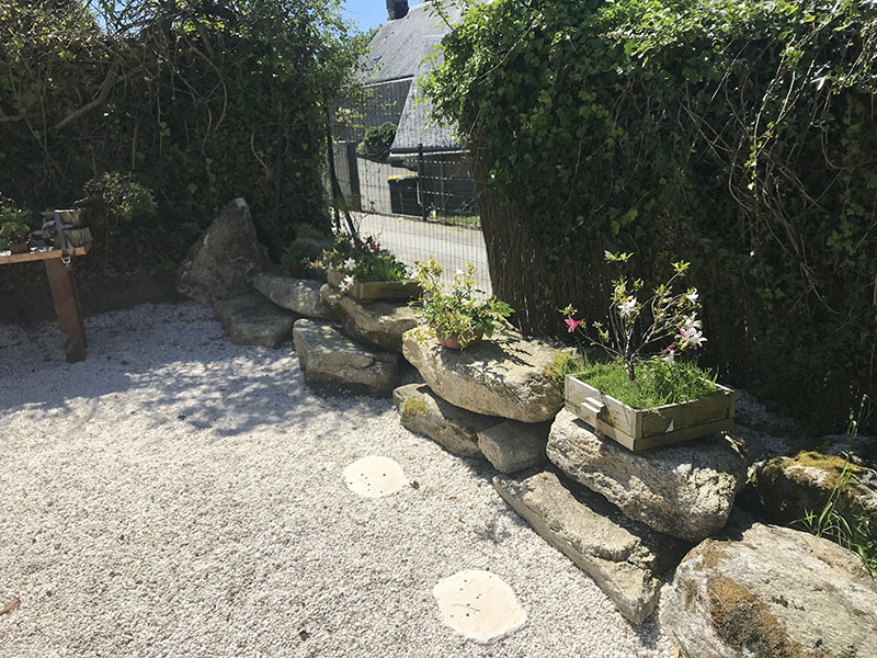 Sympa ton petit coin, pour info le géotextile n’empêchera pas la levée des adventices il constitue même un parfait lit de semence, son tissage fin et fibreux toujours humide sous la couche de gravillons offre des conditions idéales pour la levée des graines. En travaux paysagers nous utilisons de la toile tissée de plantation (la bâche verte ou marron très laide, je sais pas si tu vois laquelle dont je parle) elle limite plus la levée des graines, mais ne la supprime pas, faut pas se leurrer, une graine quand elle trouve des conditions qui lui plaisent lèvera toujours! Je ne suis pas partisan de la pose de ce type de bâche, loin de moi cette idée là, je garde à l’esprit que c’est un produit issu du pétrole, quand elles sont directement exposées aux U.V au bout de plusieurs années elles se dégradent en filasse d’abord, puis en micro paillettes pouvant facilement s’insinuer dans la chaîne alimentaire et créer une autre forme de pollution. J’essaie de décourager mon employeur quand à leur utilisation systématique, pour l’instant il fait la sourde oreille, mais je ne lacherai pas l’affaire, vive les couvre sols végétaux !