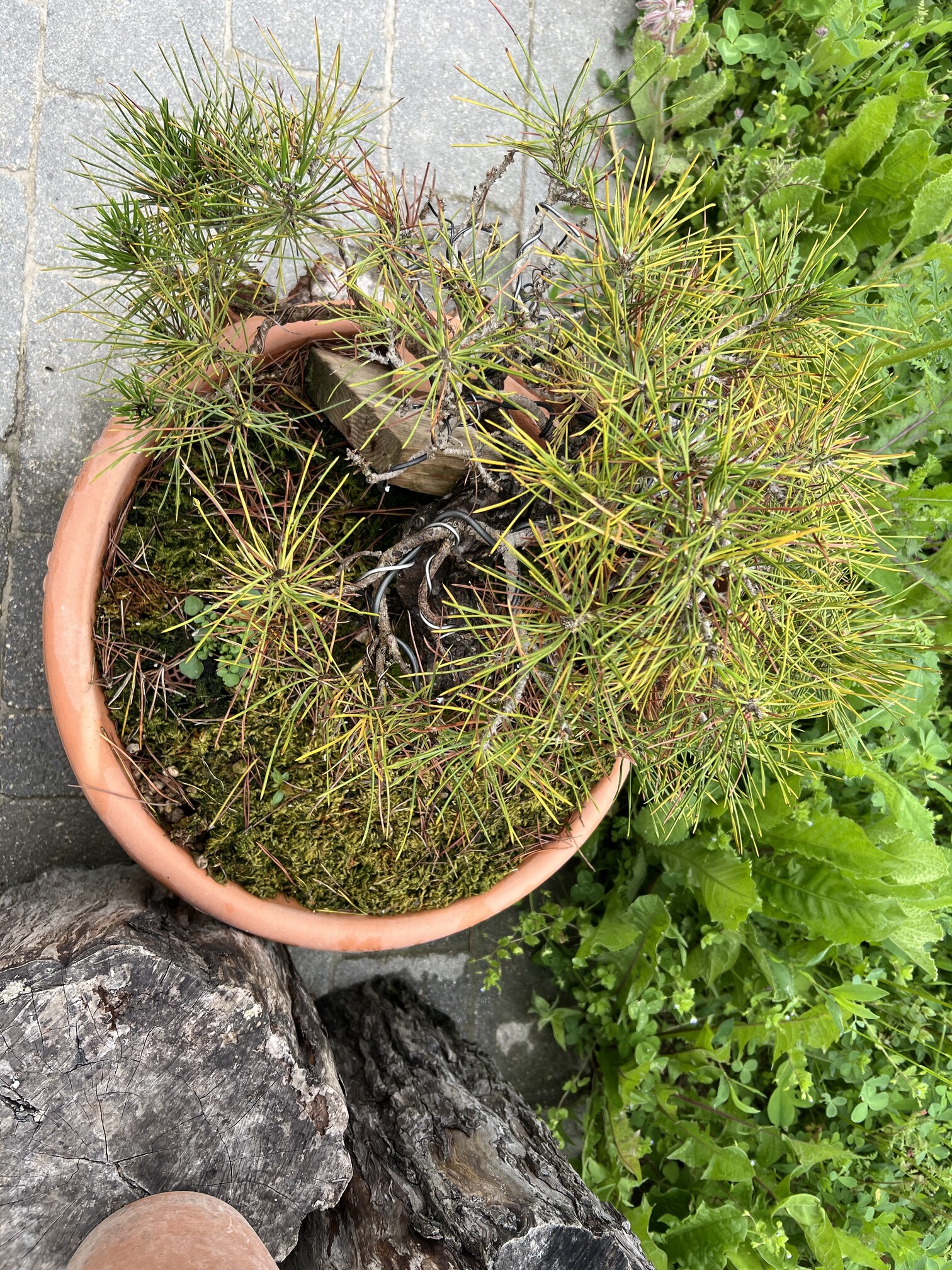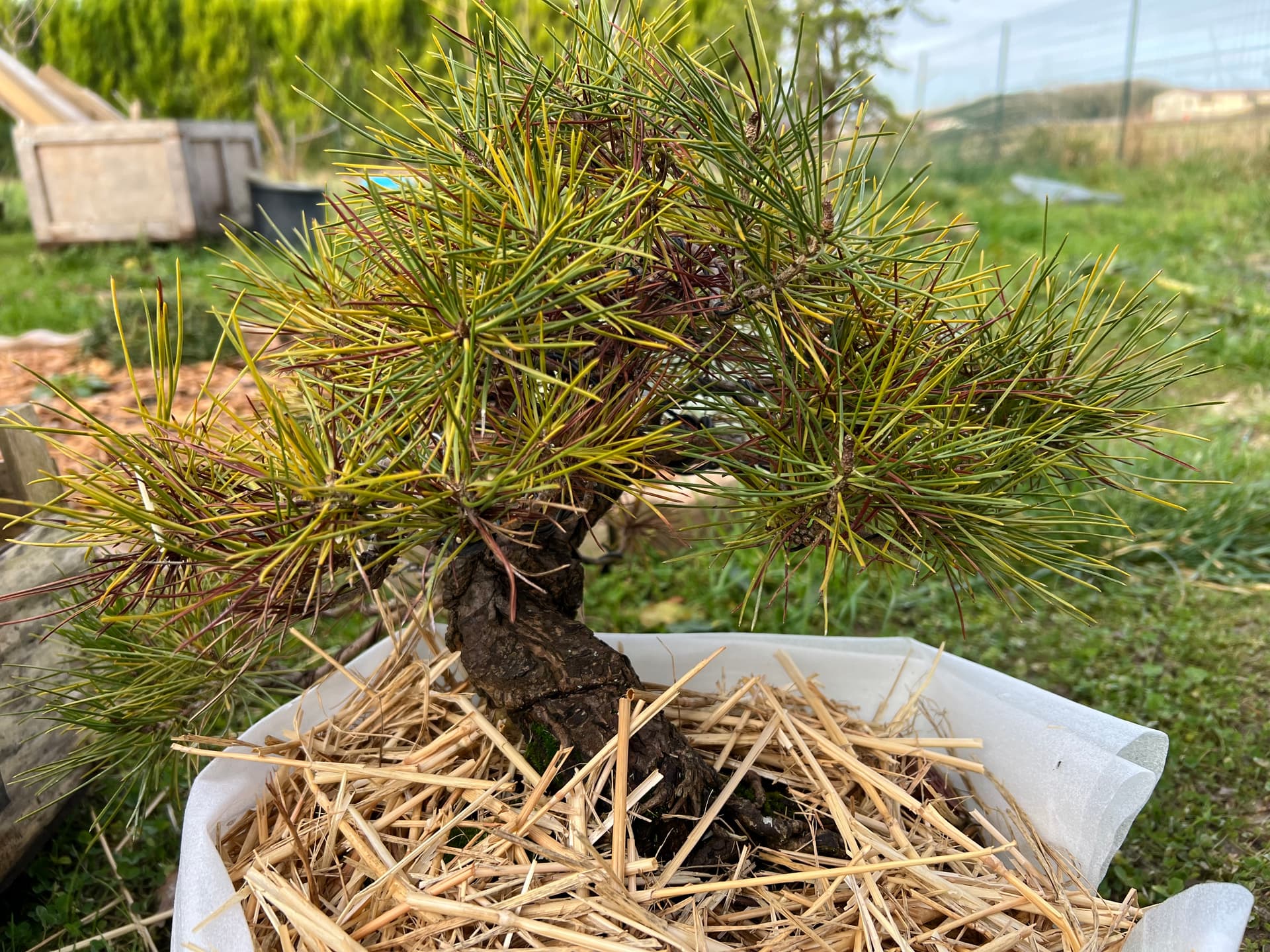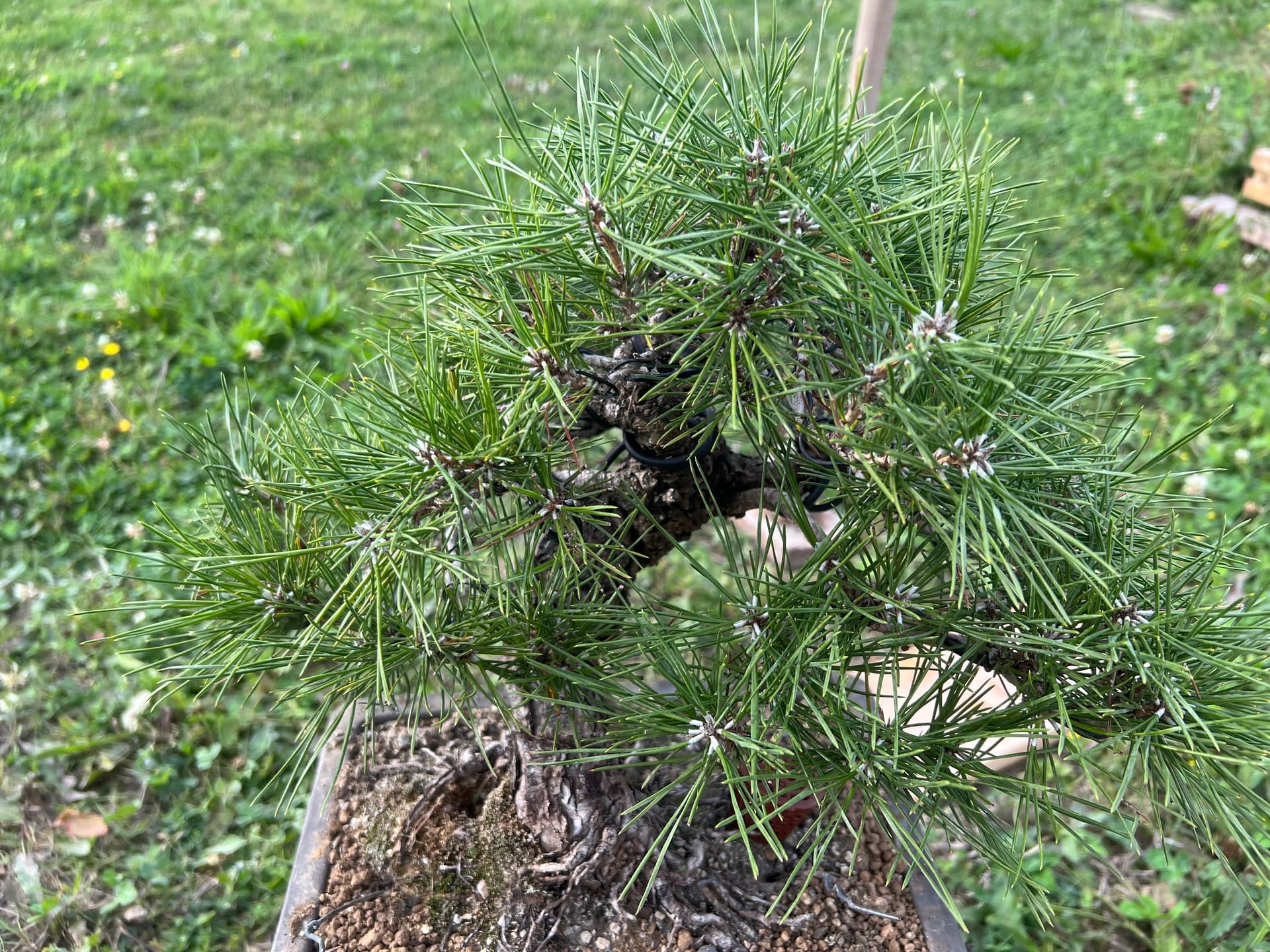 Je commence donc avec mon pinus thunbergii mon premier « vrai » bonsai acheté courant septembre 2023 après avoir épluché l’ensemble des sites internets afin d’en trouver 1 qui avait une forme qui me parle.