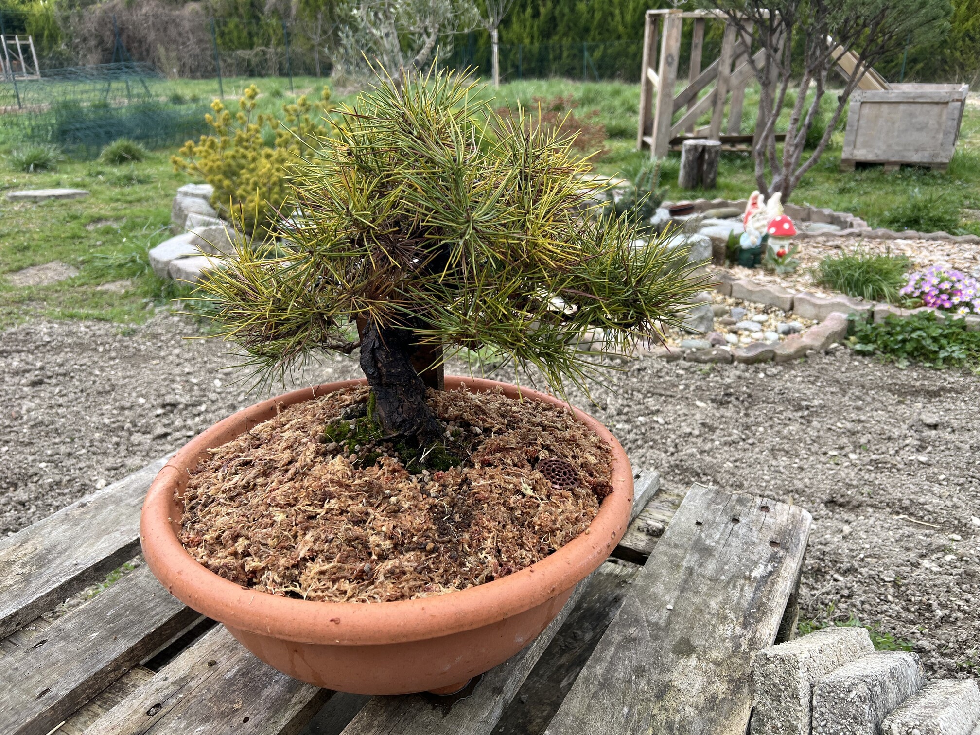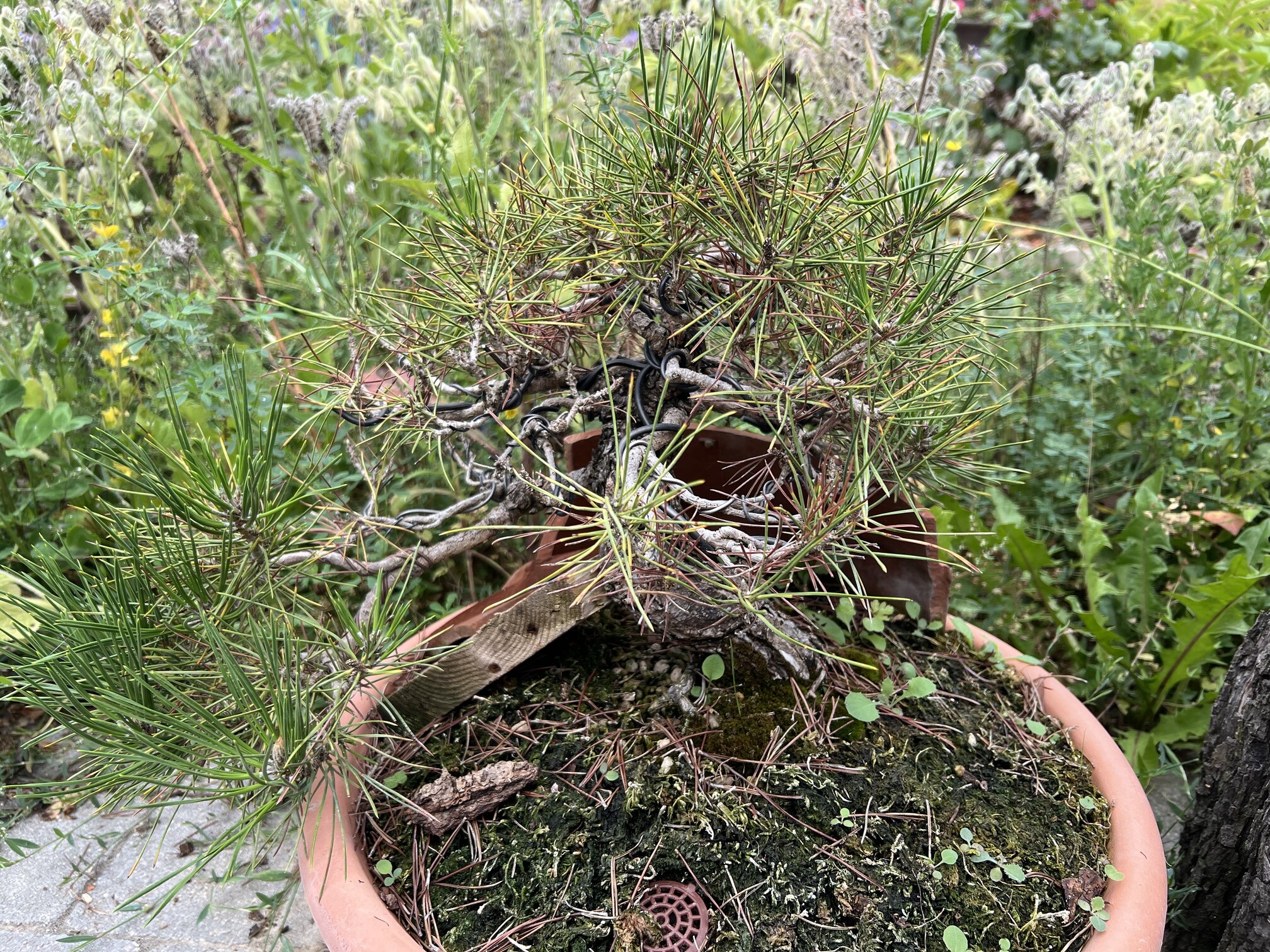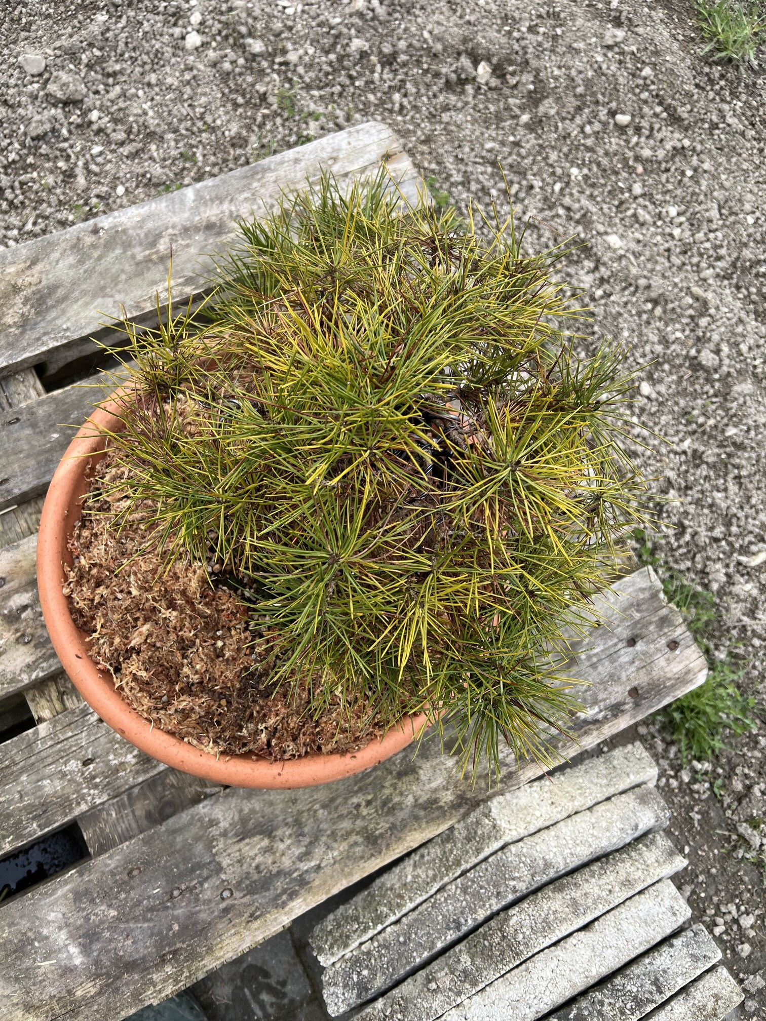 Je commence donc avec mon pinus thunbergii mon premier « vrai » bonsai acheté courant septembre 2023 après avoir épluché l’ensemble des sites internets afin d’en trouver 1 qui avait une forme qui me parle.
