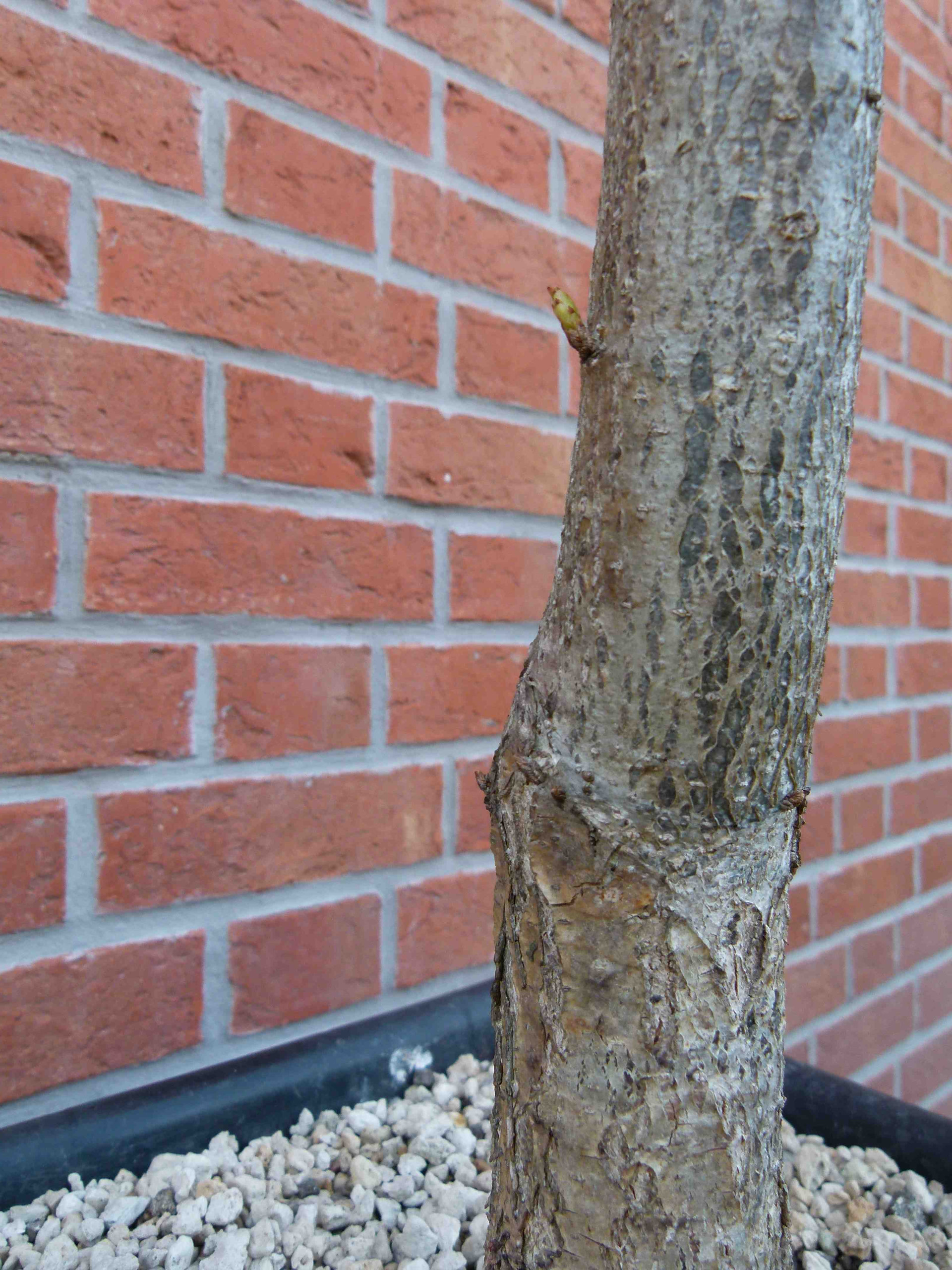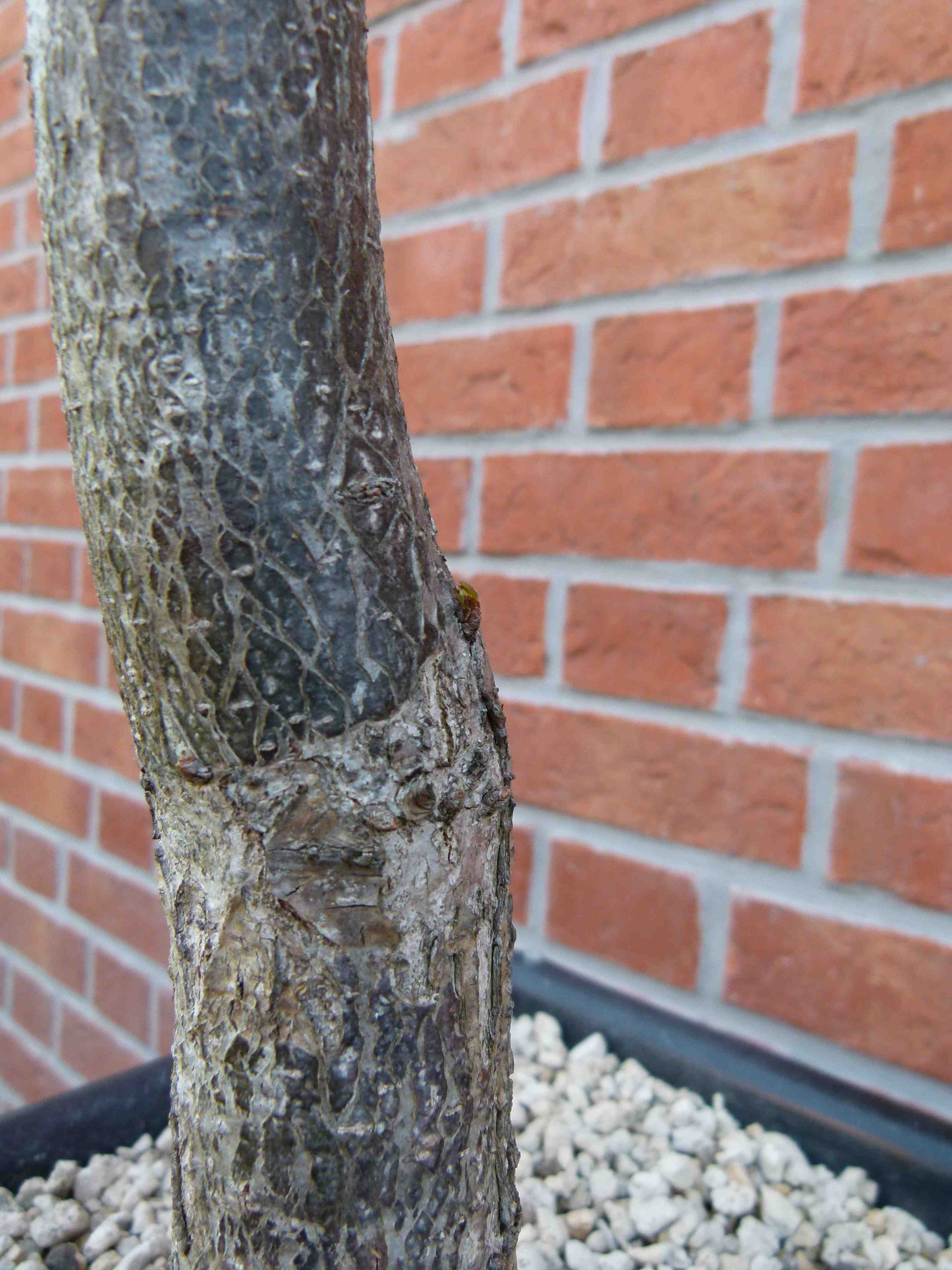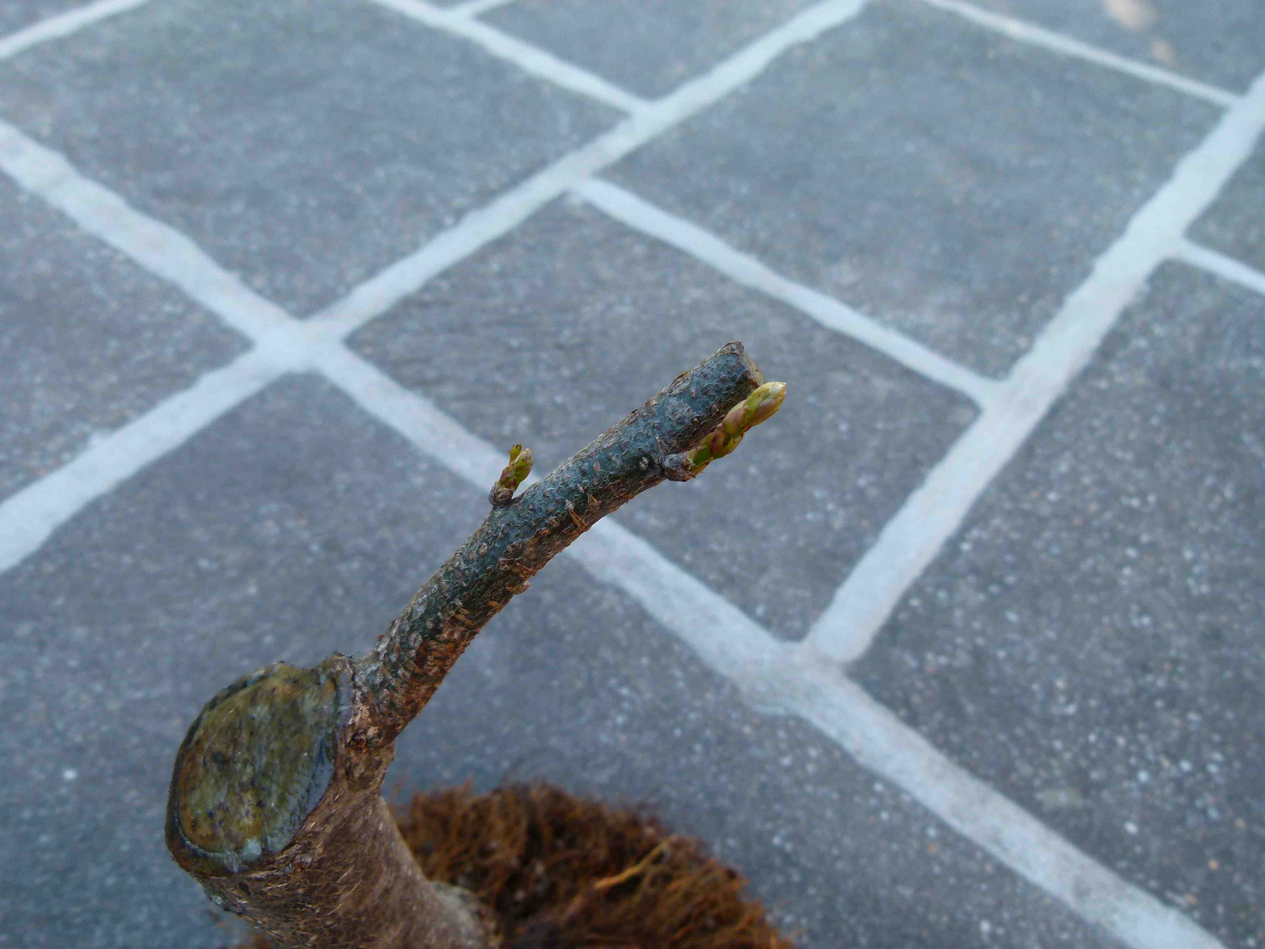 Les bourgeons latents situés sur le bas du tronc ont légèrement grossi. Au printemps, je le rabattrai pour ne garder que le tronc, tous les bourgeons latents devraient s’exprimer.