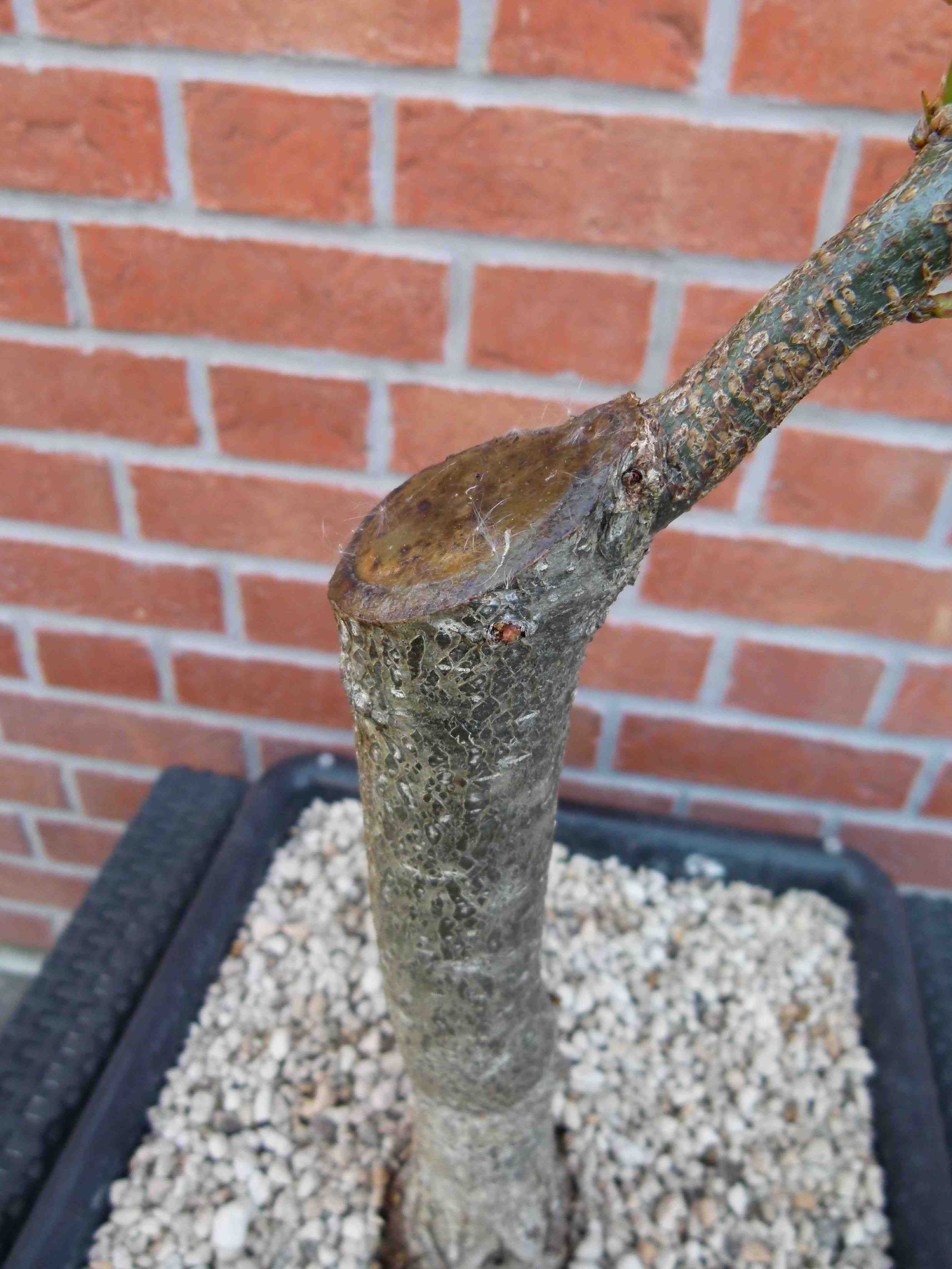Les bourgeons sur la branche relai continuent leur développement mais j’attends d’être plus avancé en saison pour être sûr de la reprise de l’arbre.