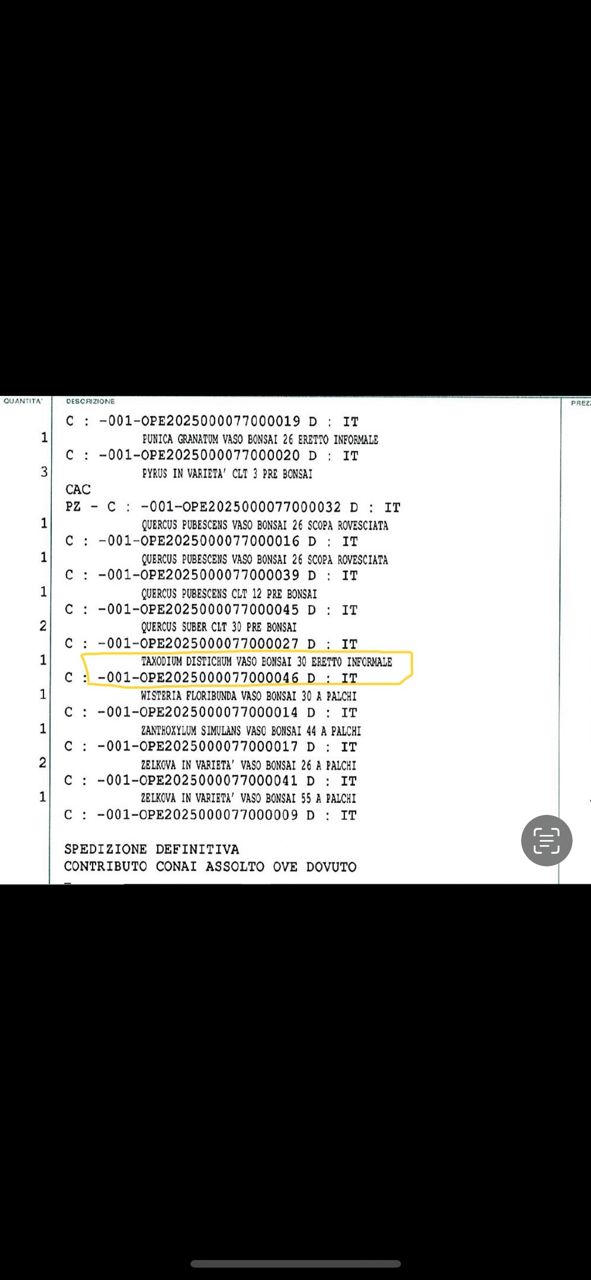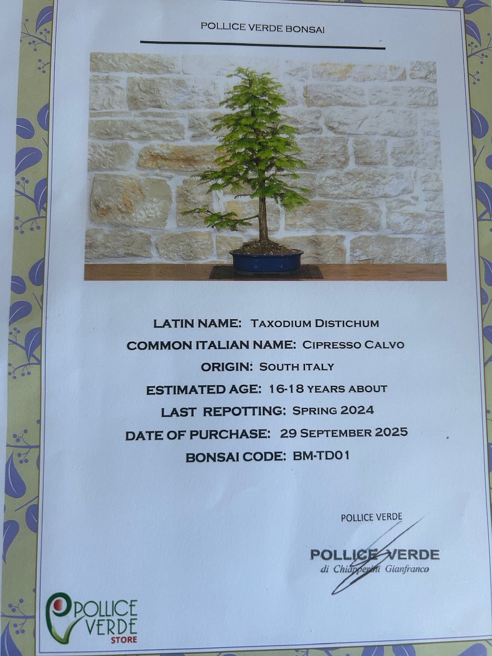 Nous vous confirmons que le bonsaï que vous avez acheté nous a été vendu par un revendeur italien historique et certifié de bonsaïs.