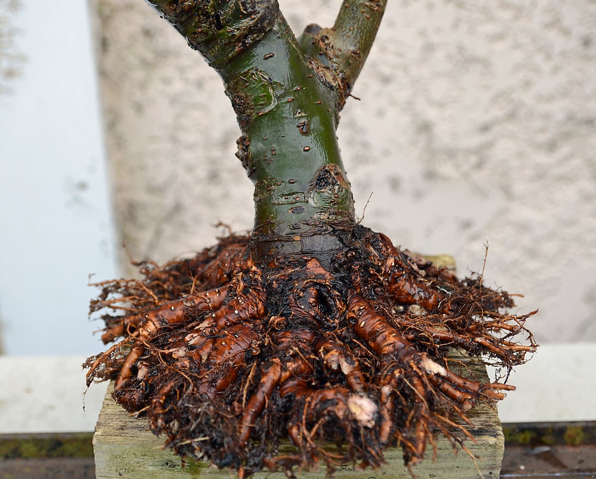Le maitre japonais Ebihara laisse les racines de palmatum se croiser, donc ça veut dire, pour moi, qu’il est tout à fait possible de conserver ces racines qui se croisent. A la fin ça fusionne et ça fait, comme dans la Nature sur les grands arbres dans les parcs, des bosses et des creux.