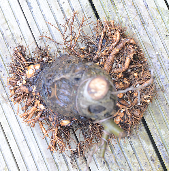 Au prélèvement, y'avait deux pauvres racines comme nebari une fois le pivot scié. Ca a bien évolué. Au delà de mes espérances, même... Quel élargissement de la base!!!