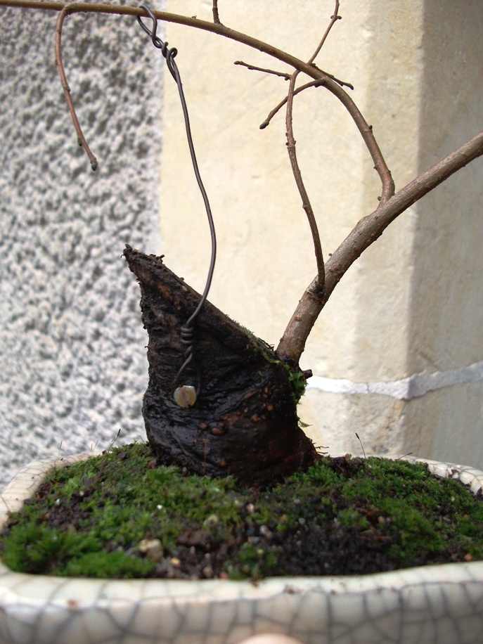 le retrait de sève est effectif (j’ai du racinaire tout autour de la base)…je vais pouvoir travailler un peu le bois mort…je garde les tire sève en attendant que ca grossisse encore un peu et je ratiboiserai en vert…je ligature pas pour eviter un marquage precoce…ca devrait grossir vite.
