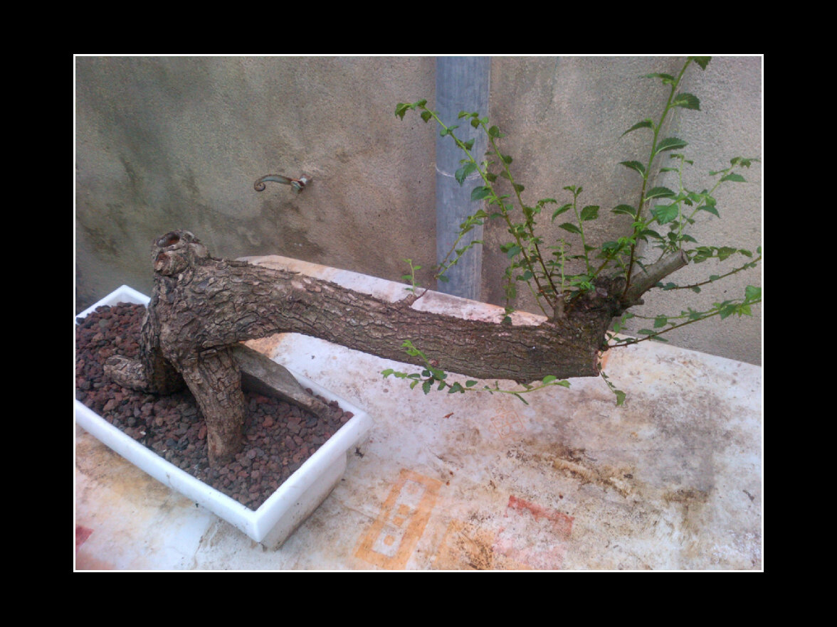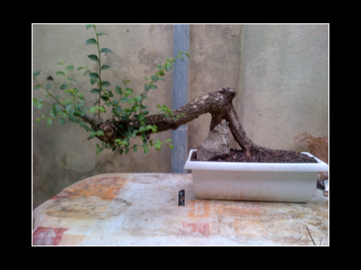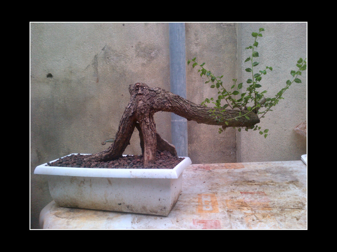 Et cela explique sa forme bizzaroide en semi-cascade… Bon, c’est sur, les deux pattes qui forment la base de l’arbre n’ont rien de conventionnel, ca, c’est le premier point. Je ne sais encore si je vais laisser comme ca, ou greffer plein de plants tout autour plus tard pour un pied plus classique…