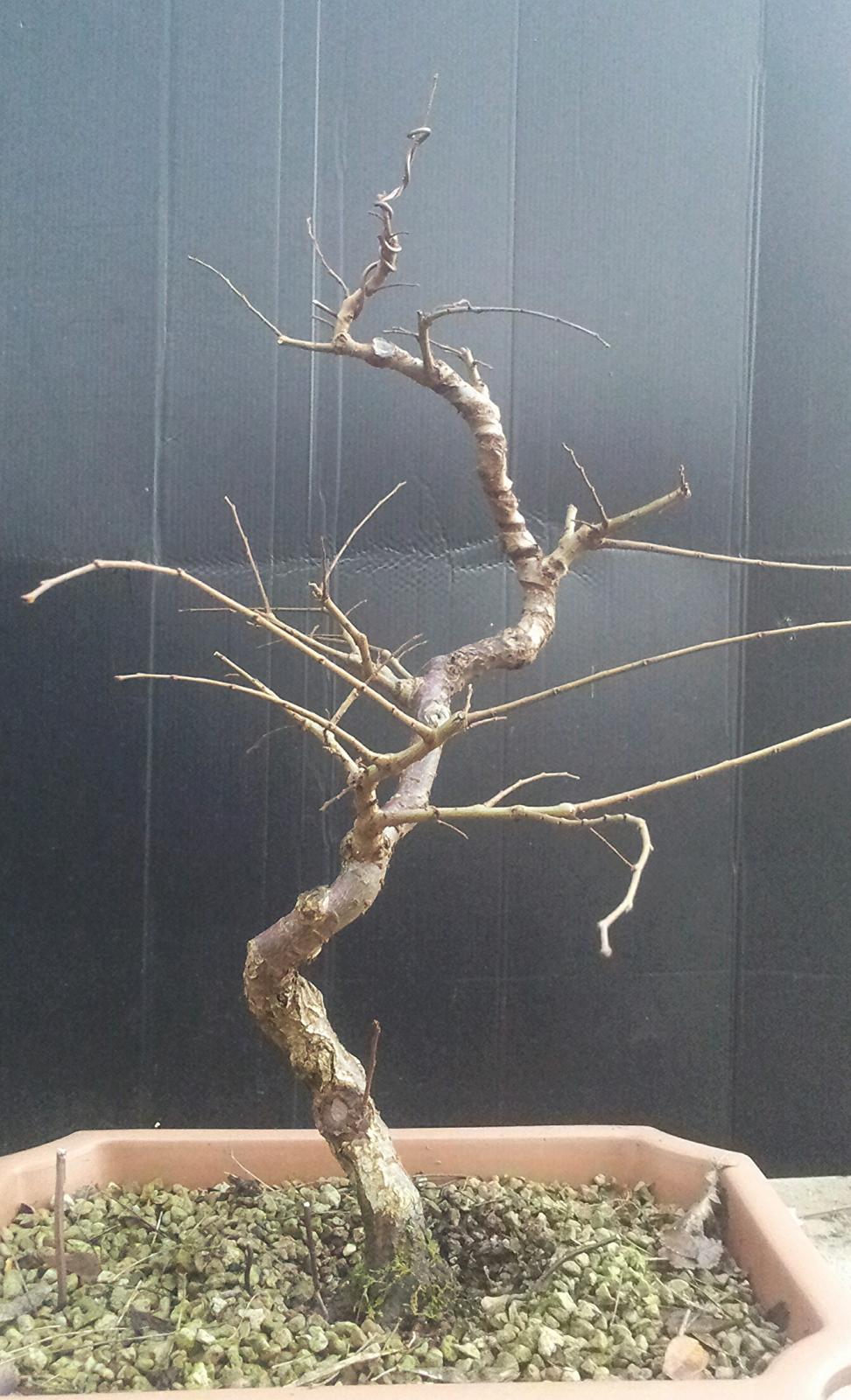 Merci Clem, ton virtuel est intéressant mais je pense que le nébari ne suivra pas si l’on penche autant l’arbre, la première branche et la branche arrière se retrouveraient un peu dans le même plan de ce fait. J’ai construit cette ligne de tronc sur un racinaire déjà bien à plat donc donner un angle maintenant s’avère plus compliqué. Je voulais un arbre assez fin, s’élevant à la verticale mais avec pas mal de petit mouvements. Reste maintenant à bien habiller ce tronc.