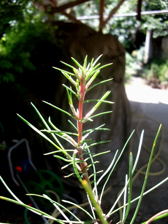 …J’ai un pin qui me fait des stipules avant des aiguilles ? c’est normal docteur (en rouge la pousse de l’année)