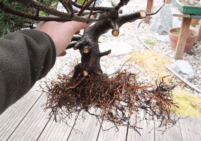 Rempotage dans un mélange pumice pouzo et taille d’environ 50 % du feuillage.