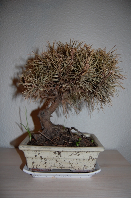 Je vous sollicite a nouveau pour un problème de bonsai. Cette fois ci, c’est un pin dont il s’agit. Comme certains d’entre vous, j’en ai fais l’acquisition dans une grande surface, et il était en très mauvais état, mais bon, vu le prix (7 €) j’ai quand même tenté le coup.