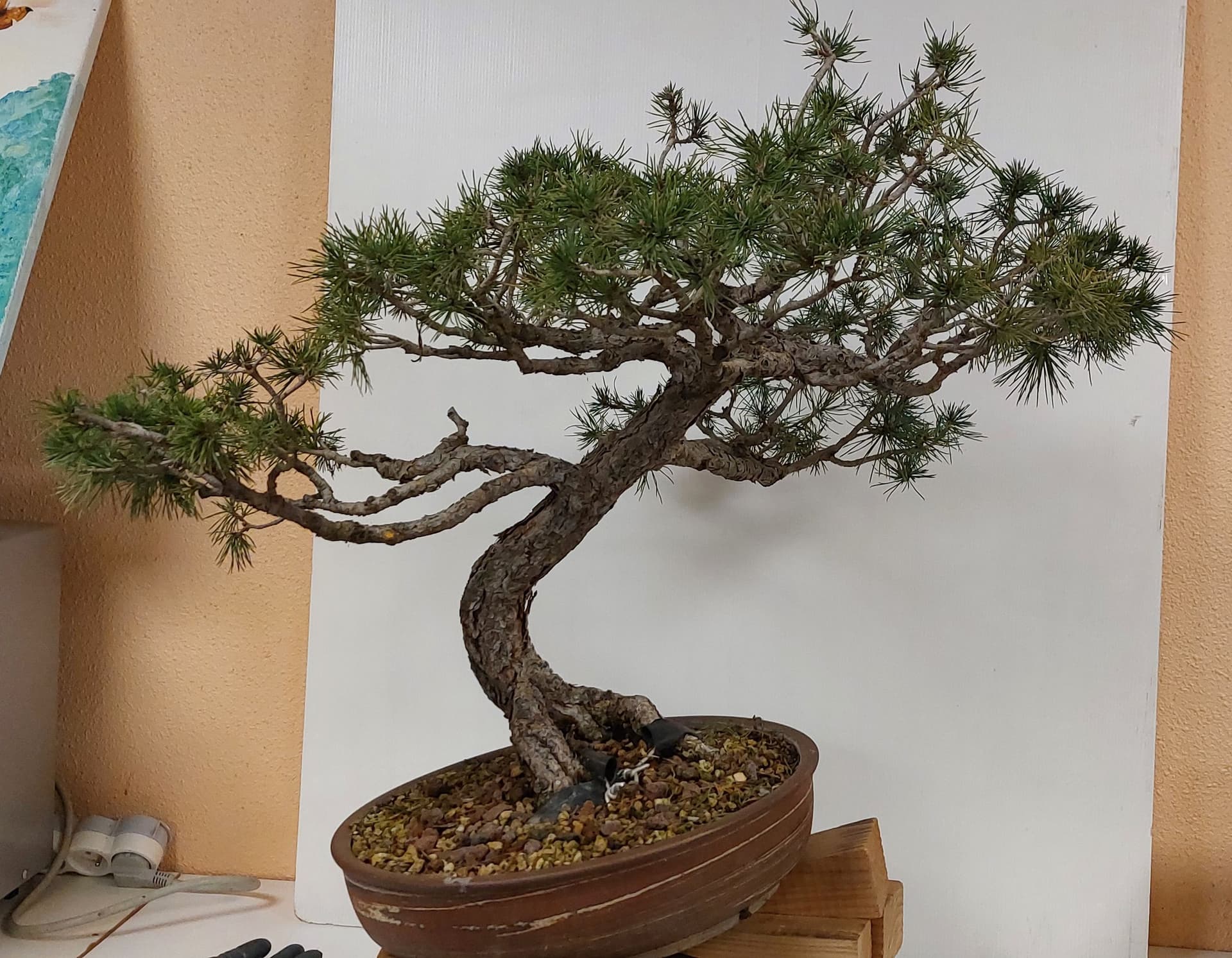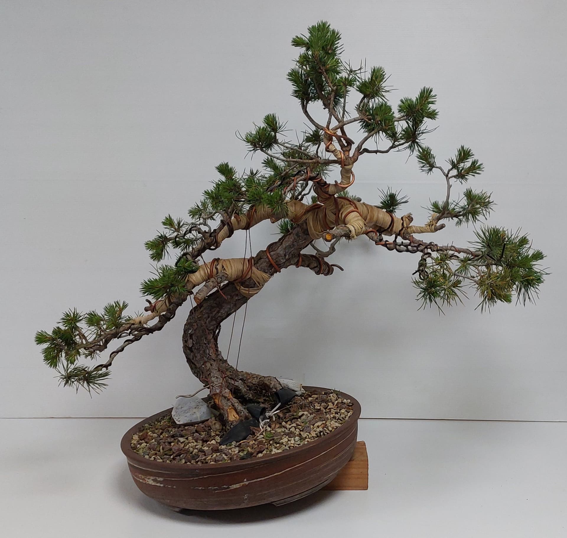 C’est encore un arbre faible donc je vais attendre encore une année avant de faire des travaux, j’ai garoté la grosse racine de gauche car le nebari n’est pas bon (au cours des années lavage du substrat en surface)