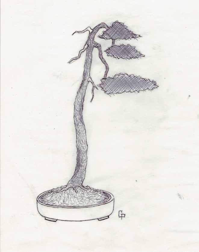 J’avoue avoir du mal avec un pin en style pleureur et après réflexion, j’ai fait ce petit croquis dans l’espoir de t’inspirer.