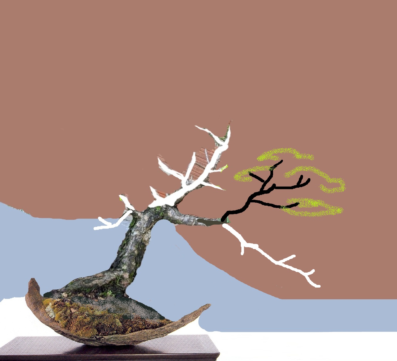 Ps : ou en repartant de la petit branche de gauche, en la faisant pousser, tout en rĂ©duisant progressivement la vĂ©gĂ©tation Ă droite, un arbre en tension. mais ce sera long et ça ne respecte pas trop lâesprit de ton arbre, qui a poussĂ© fort Ă droite..