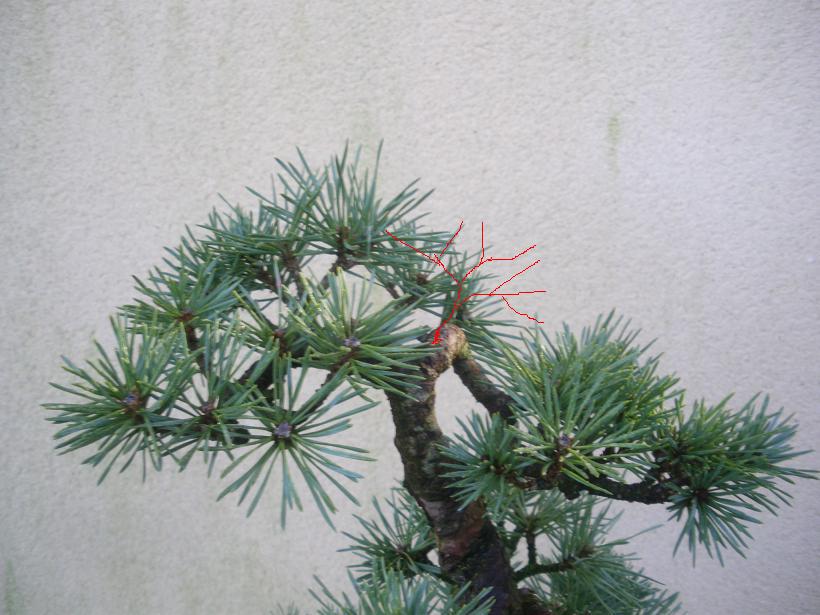 j'ai descendu un peu le shari et mis un peu de fil sur la branche de droite et sur la cime,
