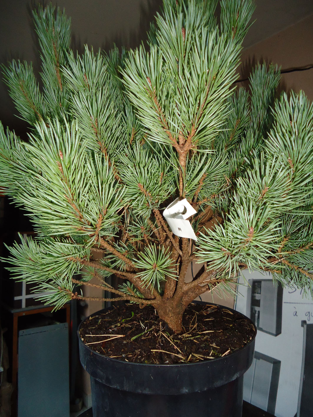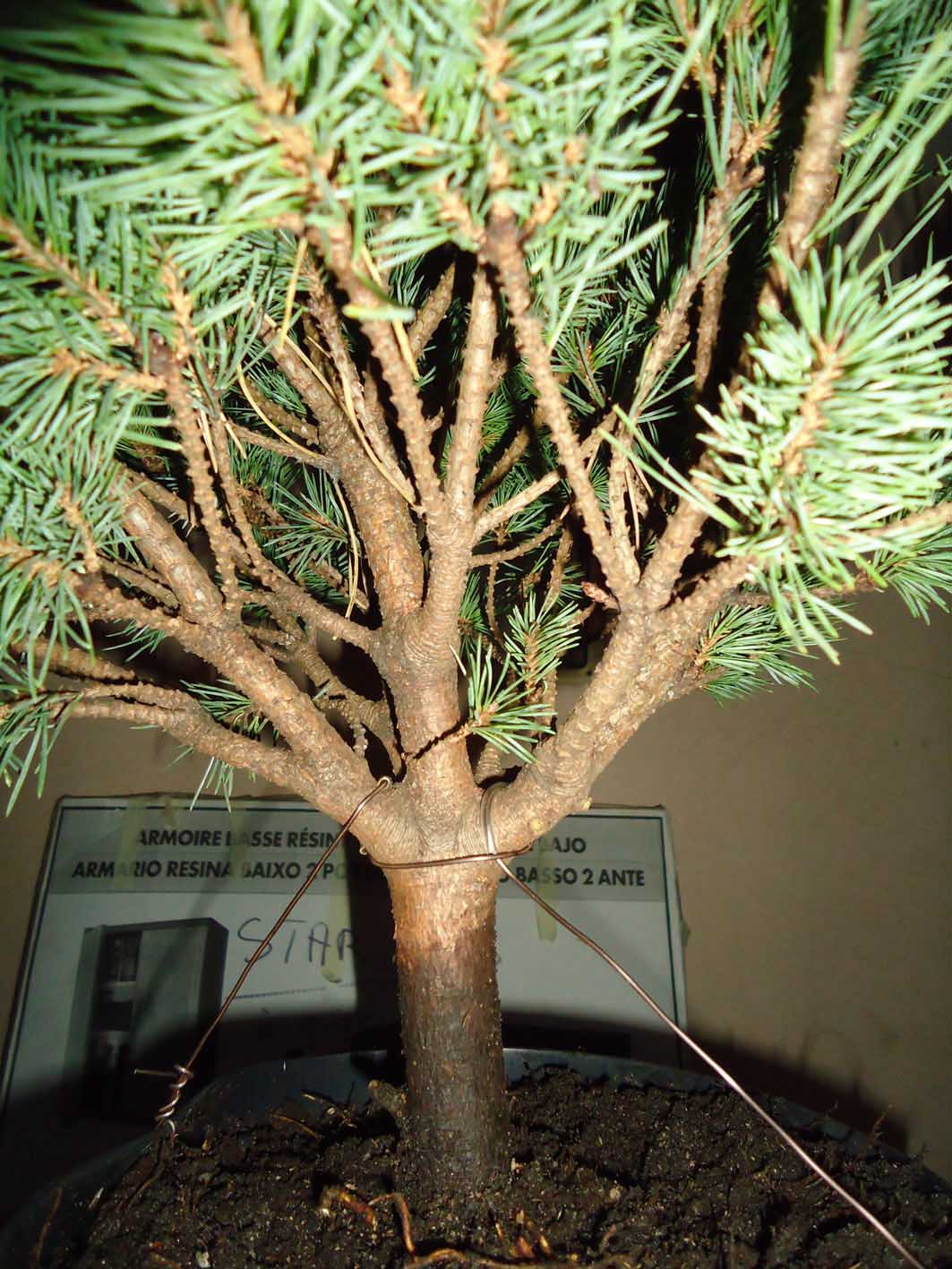 Je m’étais fait une 1ère idée de mise en forme, mais voilà j’ai dégagé sa base aujourd’hui et ai découvert 10cm de tronc en plus… Il est en pleine forme, bourré de mycorhizes. Belle conicité mais départ très raide.