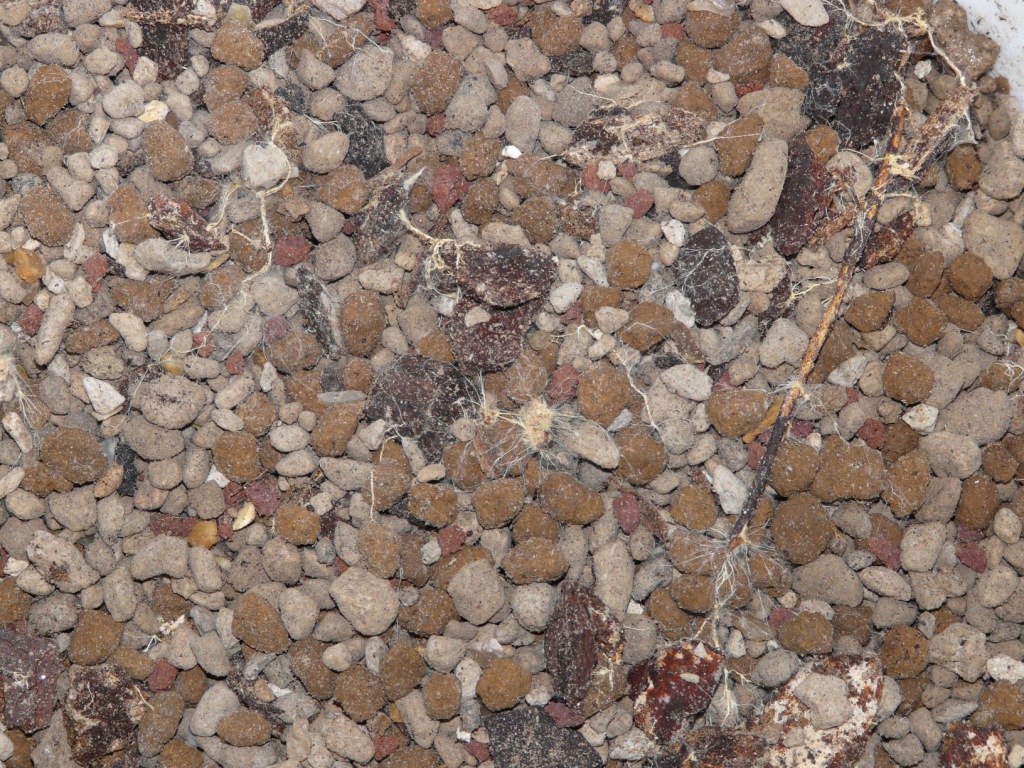 Niveau substrat pour le rempotage par contre ça gère, voilà la tête d’un mélange préparé l’année dernière avec pumice, pouzzo, akadama et écorces de pins compostés (du JDL pour leur faire de la pub!!!), bien mycorhizé: