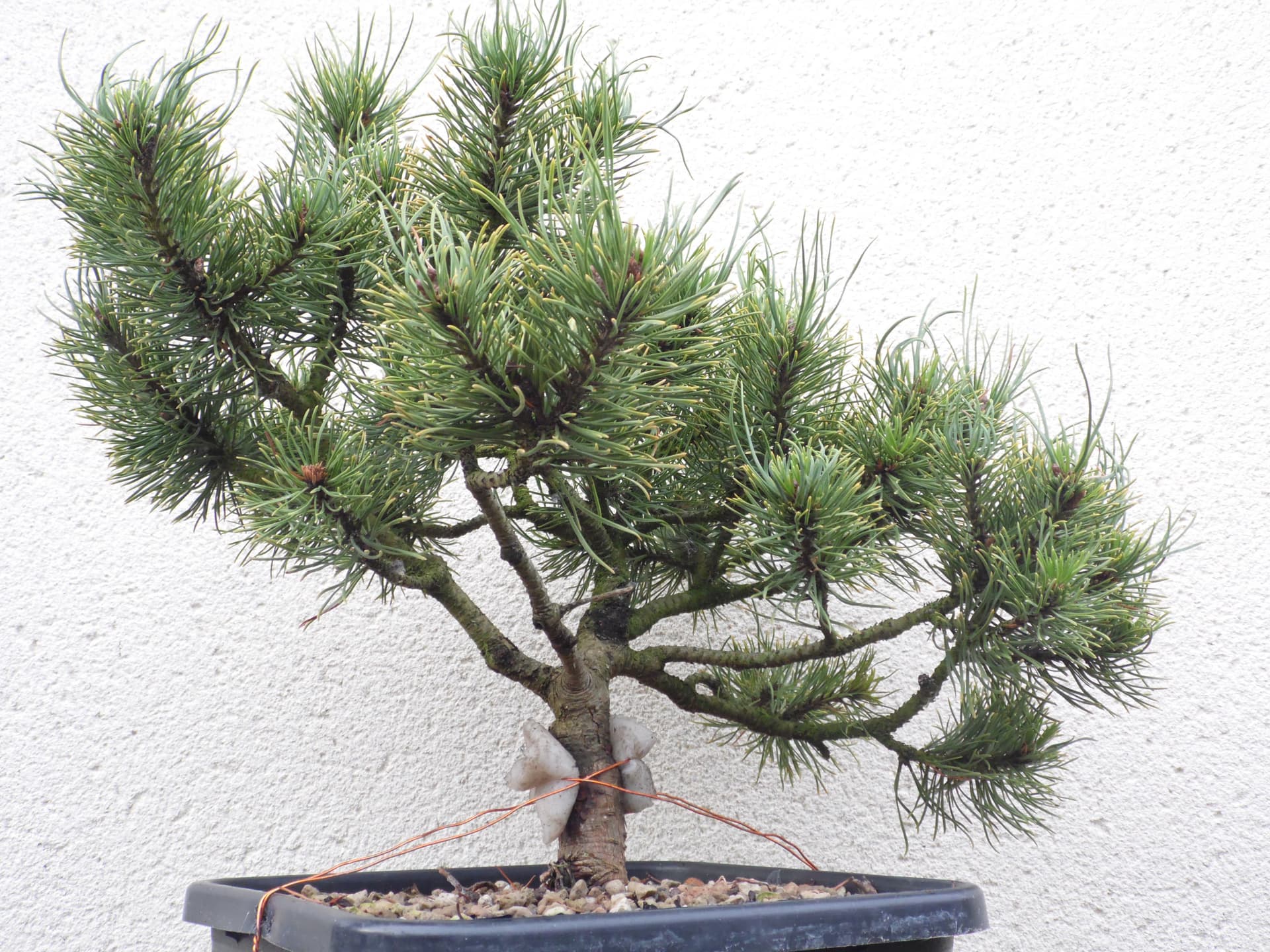 Pour la recherche d’un bourgeonnement arrière, les Mugho le font très bien, mais il ne faut pas appliquer les techniques qu’on utilise par exemple pour du Thunberg : pas de taille ou de pincement des chandelles, pas de desaiguillage. On se contente de laisser pousser en ouvrant l’intérieur de l’arbre en abaissant les branches, et ça bourgeonnera “naturellement” à l’intérieur jusqu’à ce que ces bourgeons grossissent et qu’on puisse couper pour repartir sur cette base.