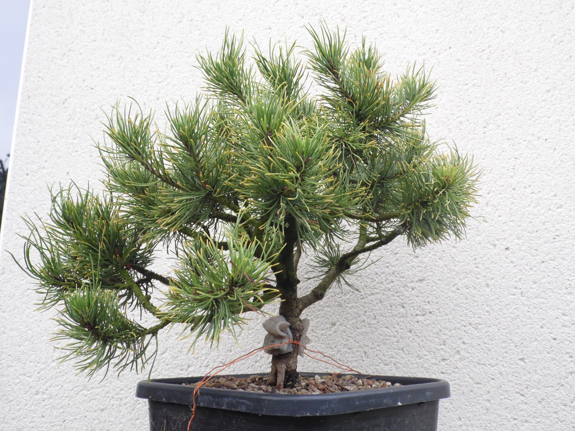 Mon premier “bonsaï”. Un Pinus mugo wintergold qui à subi beaucoup d’erreurs de débutant. Acheté en pépinière en 2023. Je l’ai laissé dans le mauvais mélange de substrat jusqu’en 2025… rempoté au début du printemps comme un bleu (racines nues, pas d’accroches, rattrapage à l’arrache en accrochant le tronc) car il avait des problèmes au niveau du racinaire plus attaque d’une chenille l’année précédente. J’ai dû couper pas mal de branches car il se desséchait…
