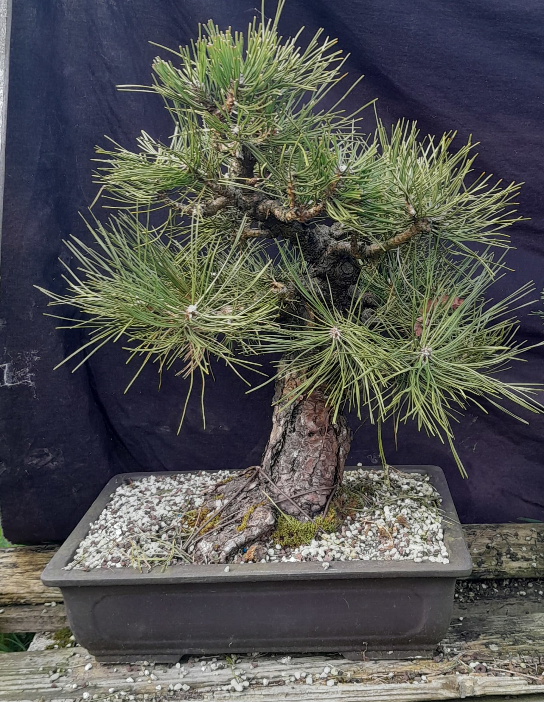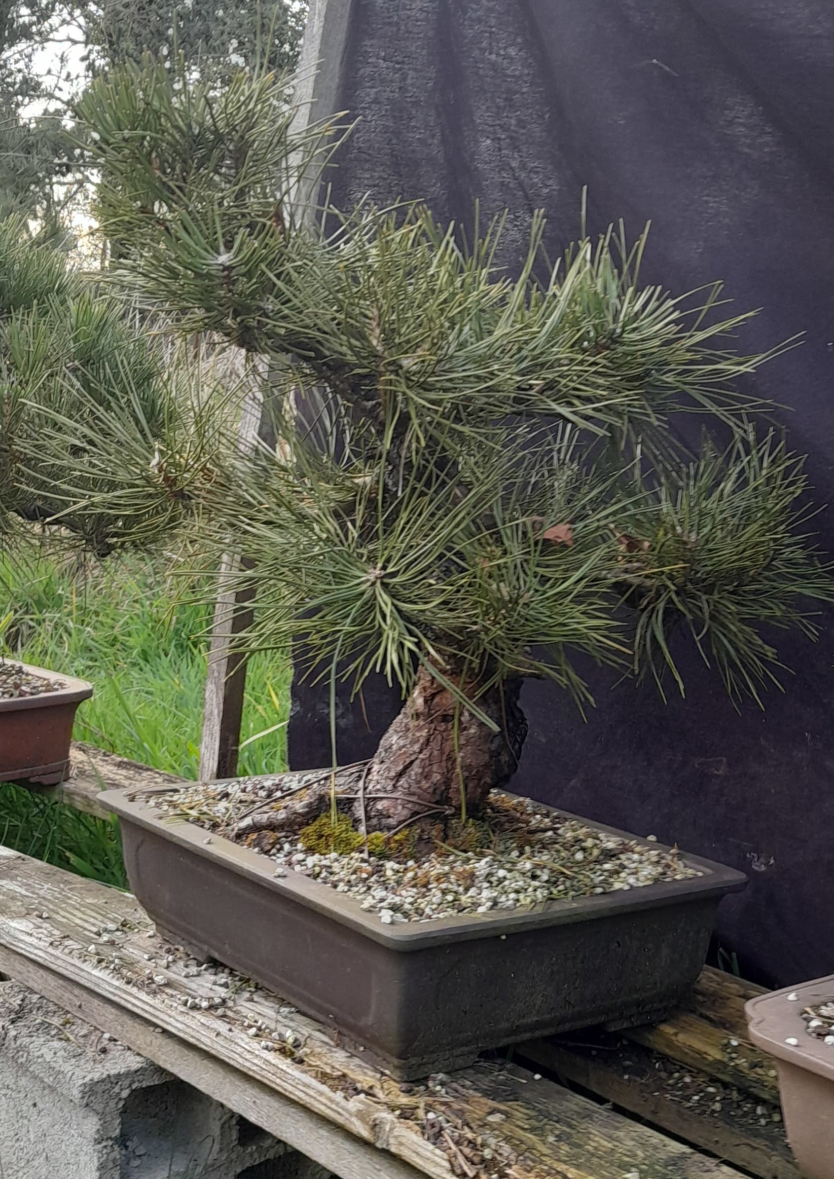 on travaille avec un copain en corse un pin laricio acheté dans une pepiniere d’Ajaccio depuis au moins 15 ans, on obtient de bons resultats avec cet arbre qui reagit bien aux interventions de taille, les aiguilles ont beaucoup retrécit et cet arbre est devenu tres beau, l’ecorce aussi est superbe.