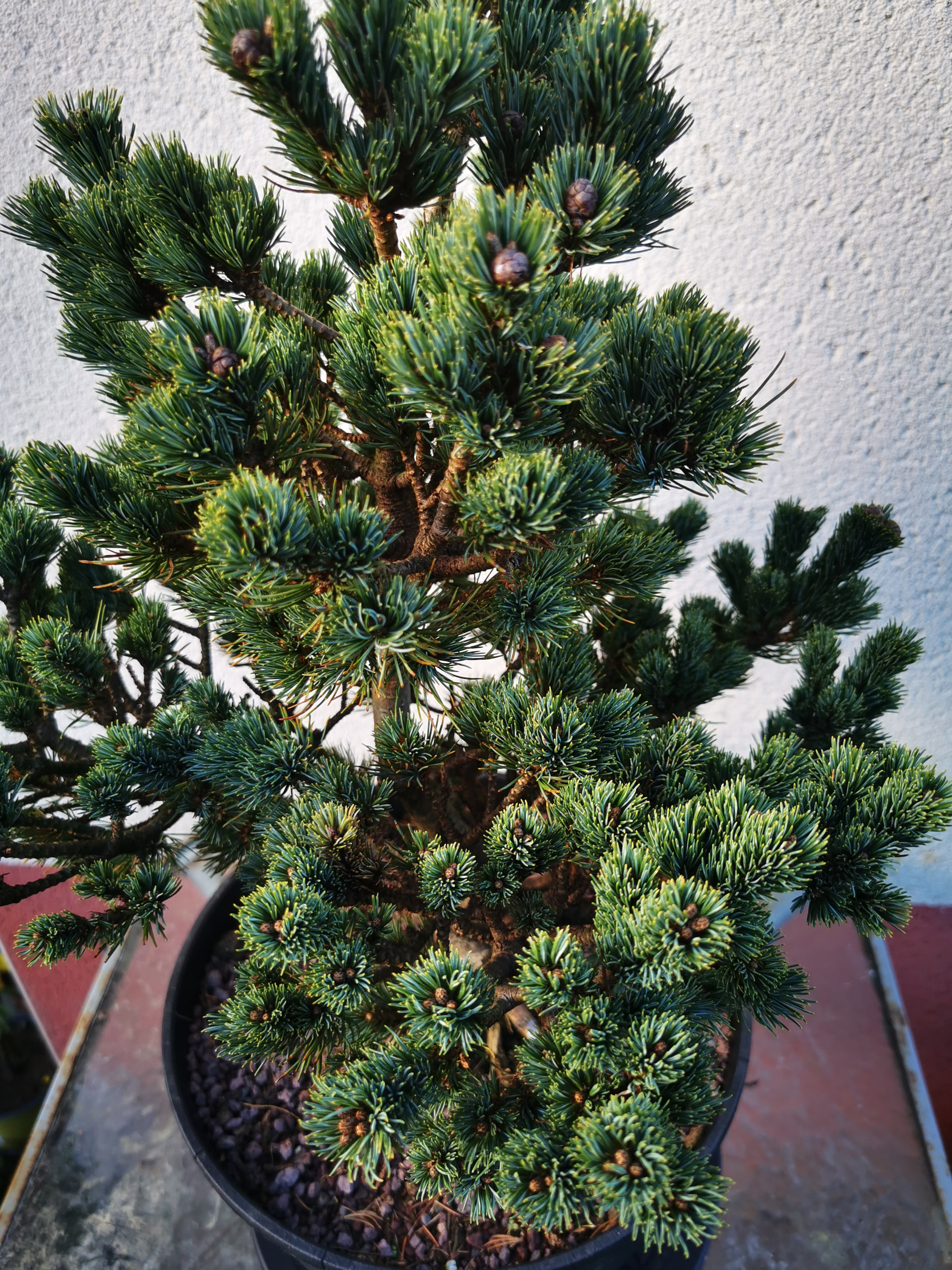 Avec les années, vu qu’il a de petites aiguilles, ça peut devenir un bel arbre, avec tronc plus épais, branches ramifiées etc. Y’a beaucoup de pins blancs japonais gréffés sur pin noir qui sont très beaux, avec greffe qui devient invisible.