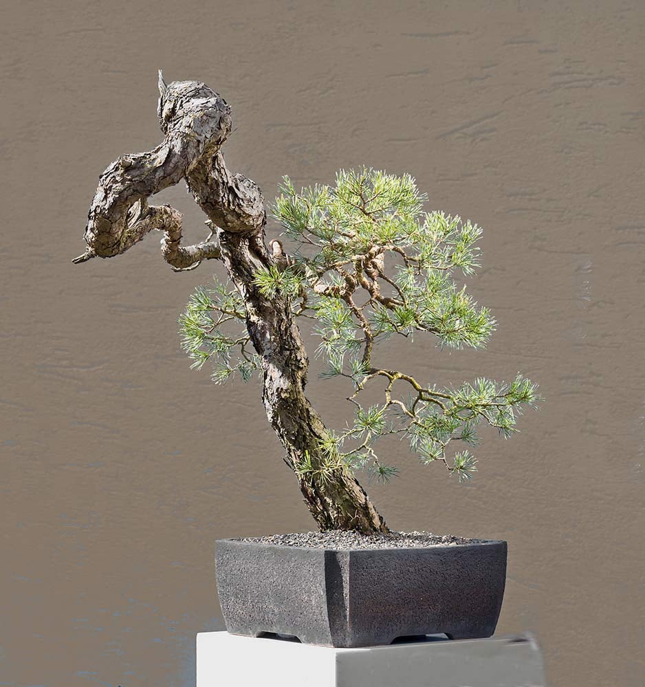 Les chandelles de celui-ci commencent à s'allonger sérieusement, et je vais le rempoter prochainement (bon après les gelées bien sûre). Je viens de voir une photo de Walter Pall qui me met un doute. Il présente un pin dans un pot similaire du même potier, mais avec la face sur l'arrête. Du coup je me dis pourquoi pas ? Mais présenté sur un côté, l'ensemble pourrait paraitre plus puissant, massif.