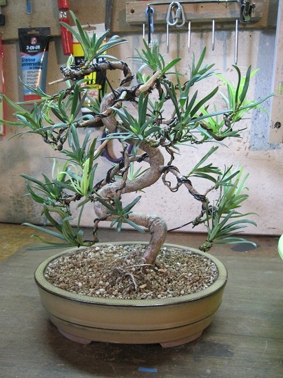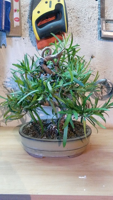 J’ai achété un podocarpus il y 2 ans, le voici 1 ans après son achat juste transpoté dans un pot plus grand.