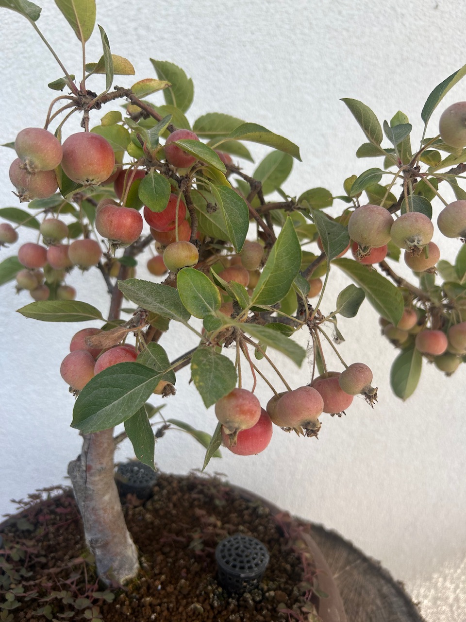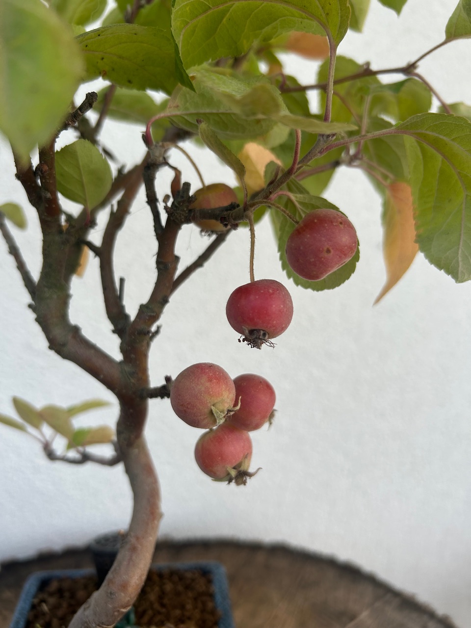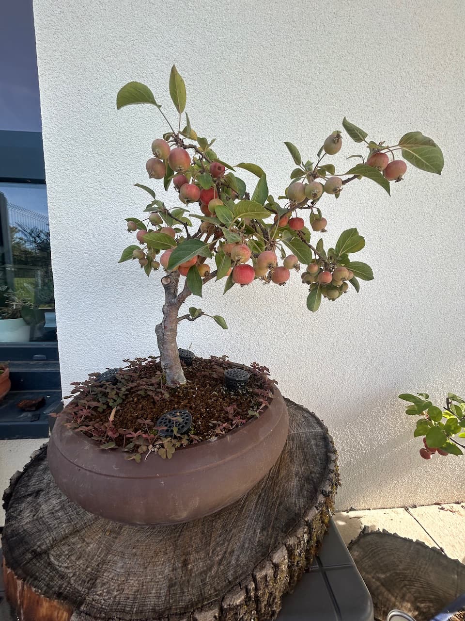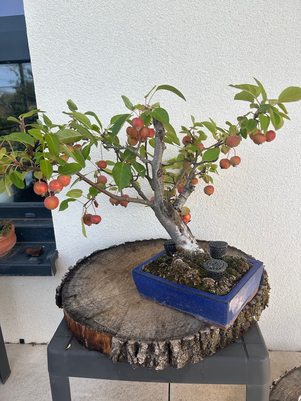Mes Pommiers avec leurs fruits bien mûrs désormais. Il y’en a énormément cette année, dois-je en enlever une partie pour cet hiver? Je compte aussi remettre du Biogold aujourd’hui sur tous mes Bonsaï, mais je pense que ce sera la dernière fois cette année non? D’habitude je n’en mets que 2 fois par an, au printemps et en automne. Vu qu’il met déjà 2/3 semaines à agir ce serait du gâchis d’en remettre encore, ou pas? Merci.