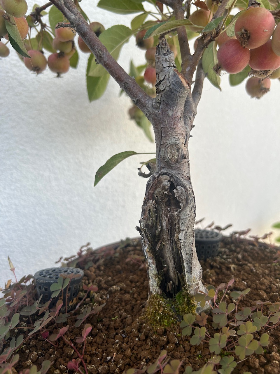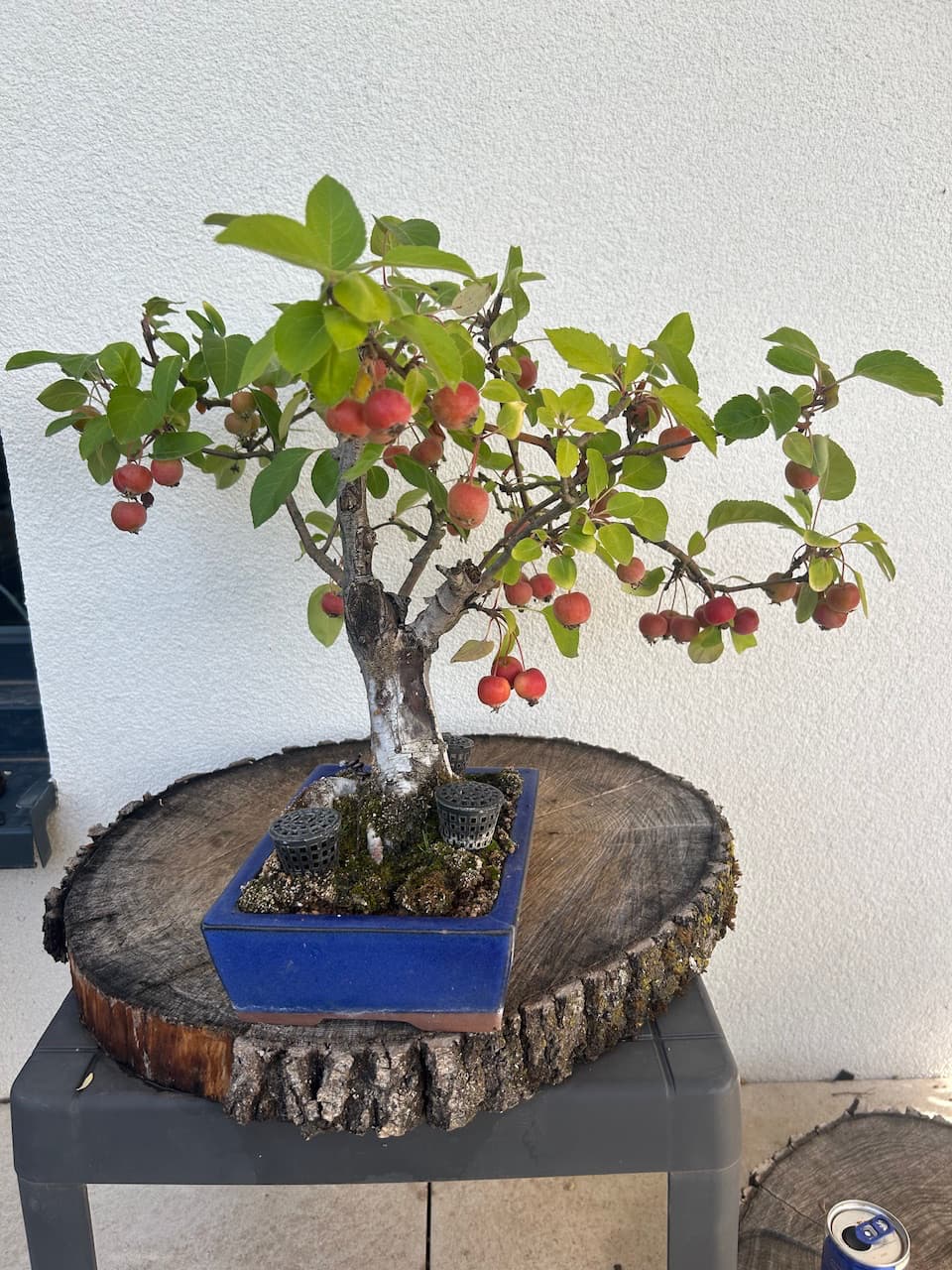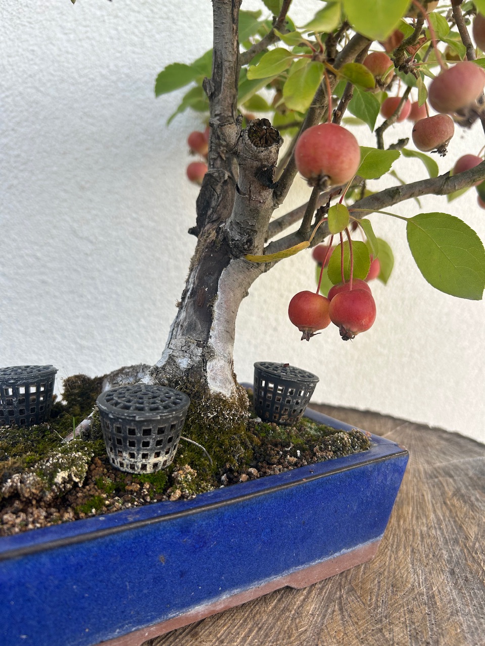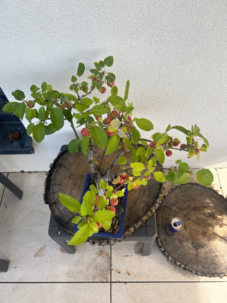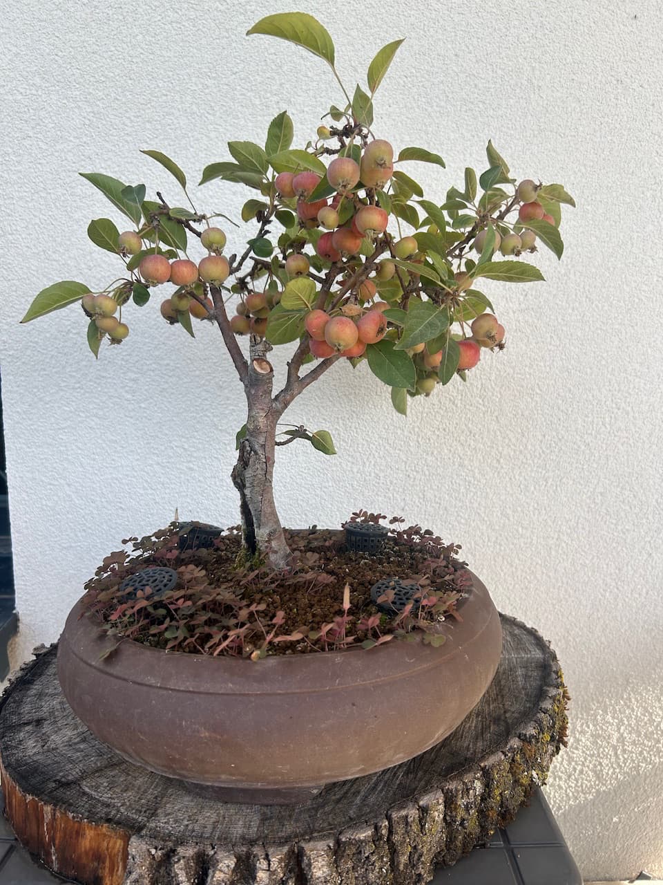 Mes Pommiers avec leurs fruits bien mûrs désormais. Il y’en a énormément cette année, dois-je en enlever une partie pour cet hiver? Je compte aussi remettre du Biogold aujourd’hui sur tous mes Bonsaï, mais je pense que ce sera la dernière fois cette année non? D’habitude je n’en mets que 2 fois par an, au printemps et en automne. Vu qu’il met déjà 2/3 semaines à agir ce serait du gâchis d’en remettre encore, ou pas? Merci.