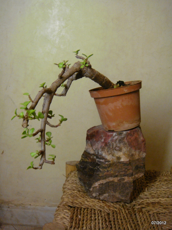 voici plusieurs plants de portulacaria dédiés pour faire de petits bonsaî, certain ont du potentiel, d'autres pas, ... mais ces petites plantes supportent super bien notre climat semi-aride, et égalelment l'hiver sans gel, ces petites bestioles continuent de pousser même avec du 50° a l'ombre....