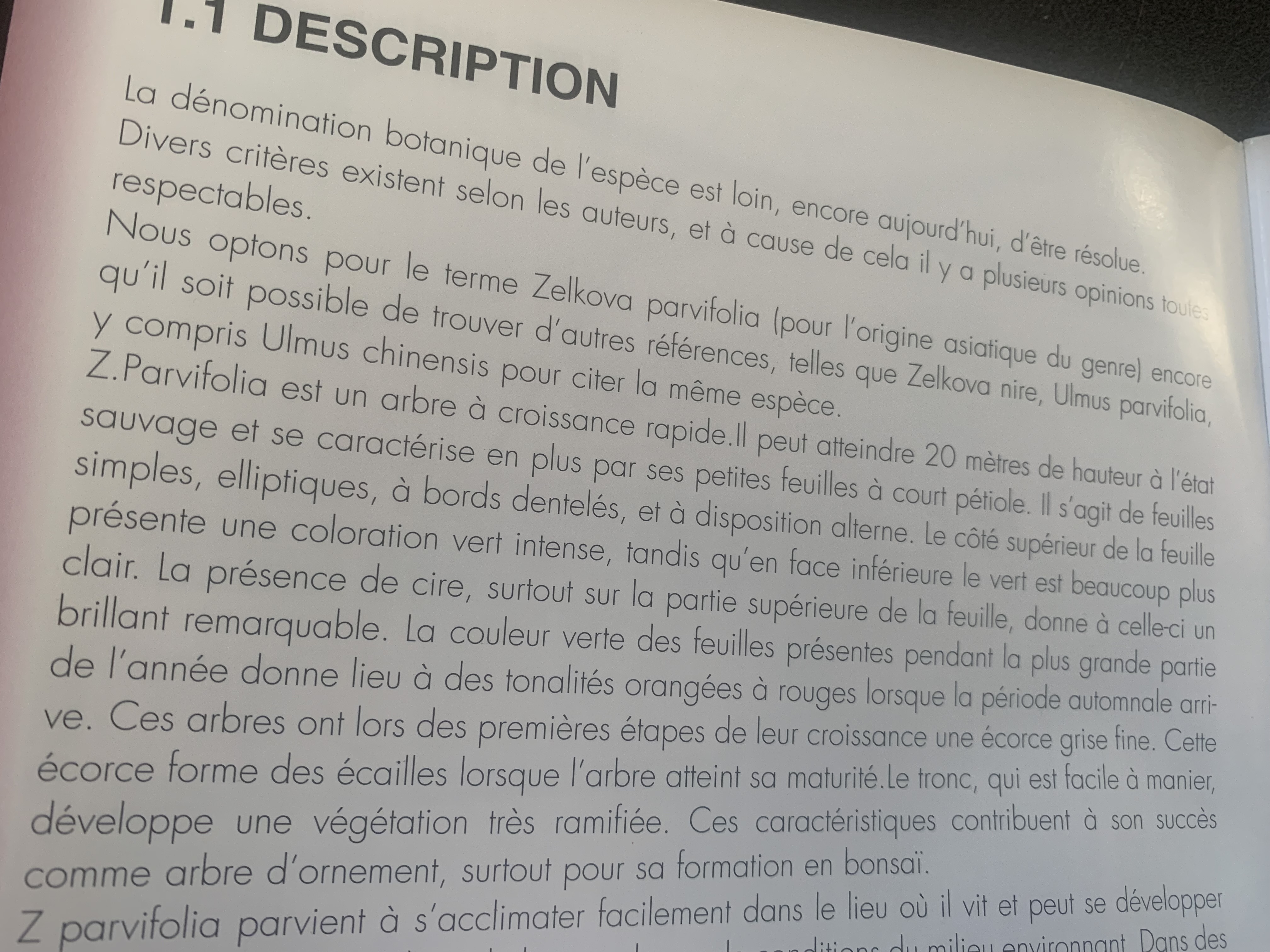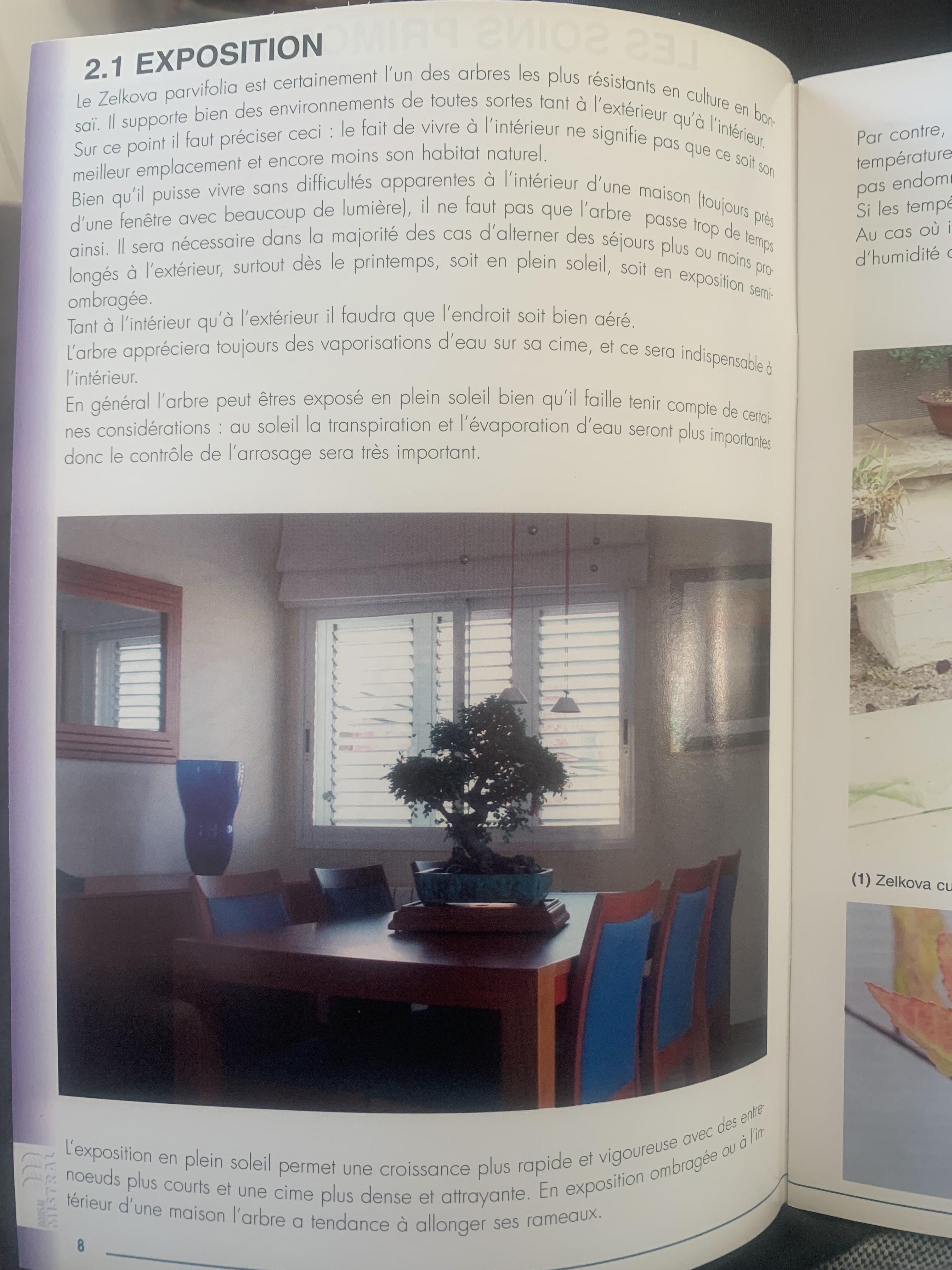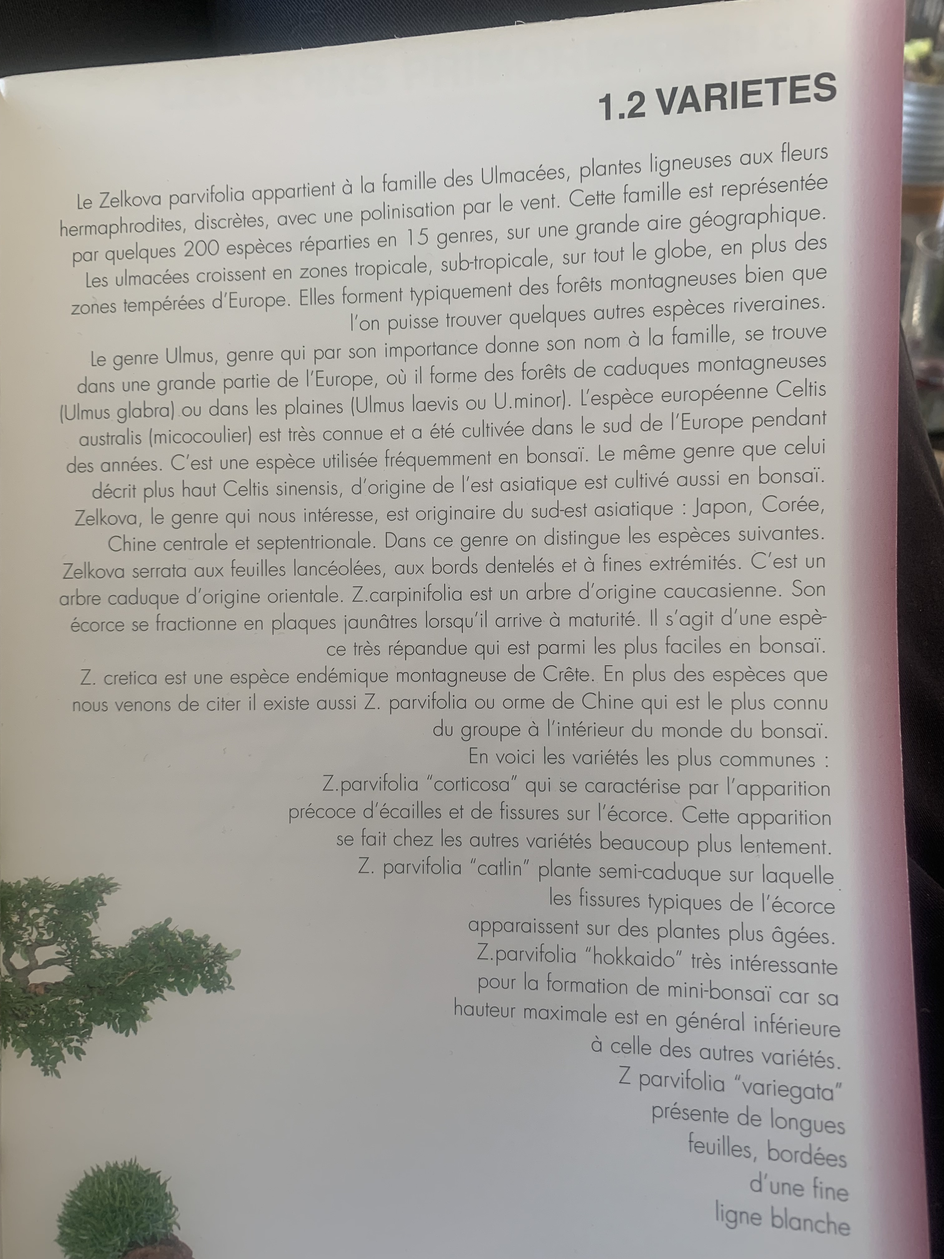 Sinon j’ai acheté ce livre récemment bon le mien est un Orme et pas un Zelkova mais je pense que les mêmes règles s’appliquent…??