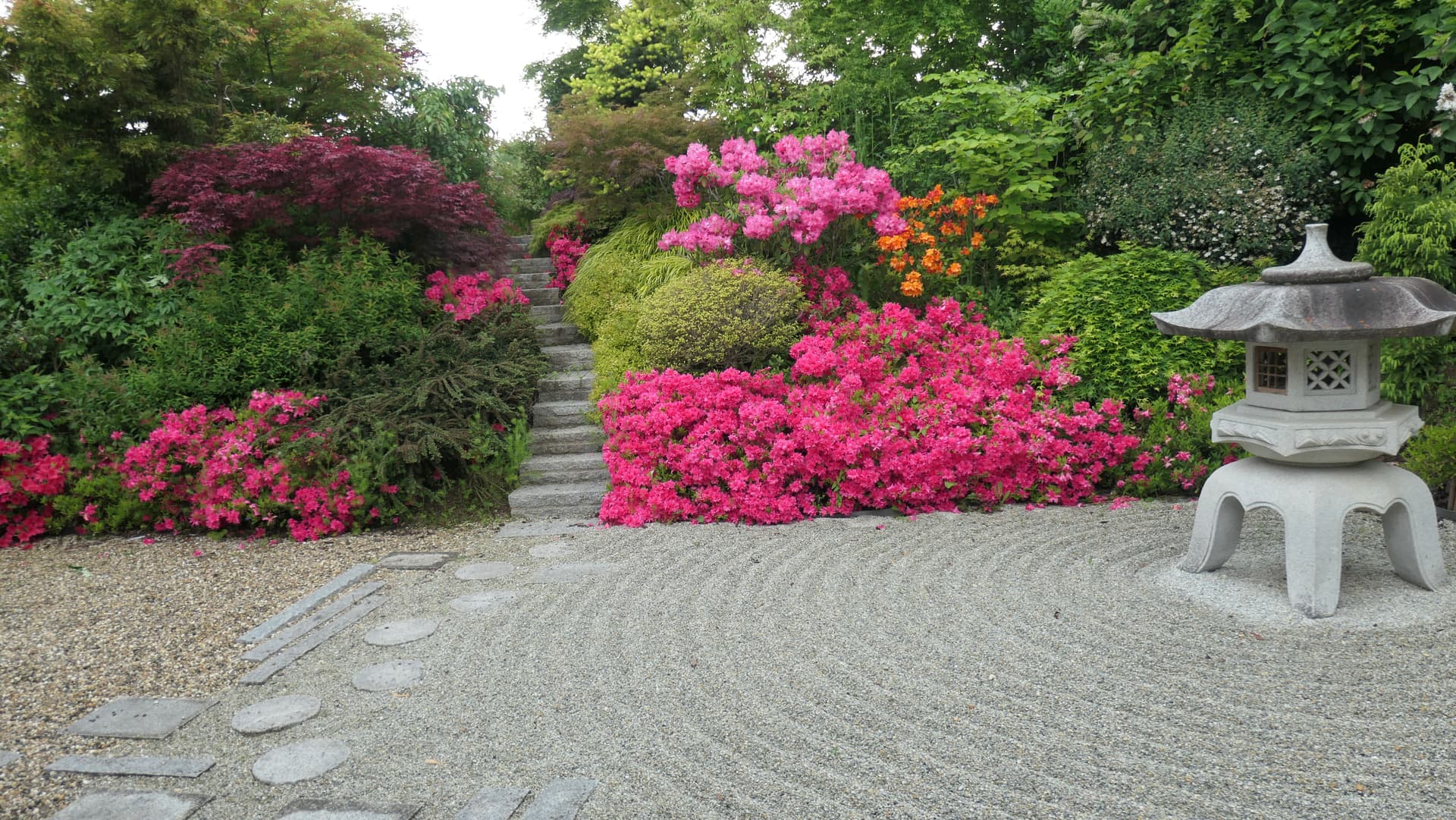 J’ai aussi un jardin de style japonais dont voici une photo (au printemps)