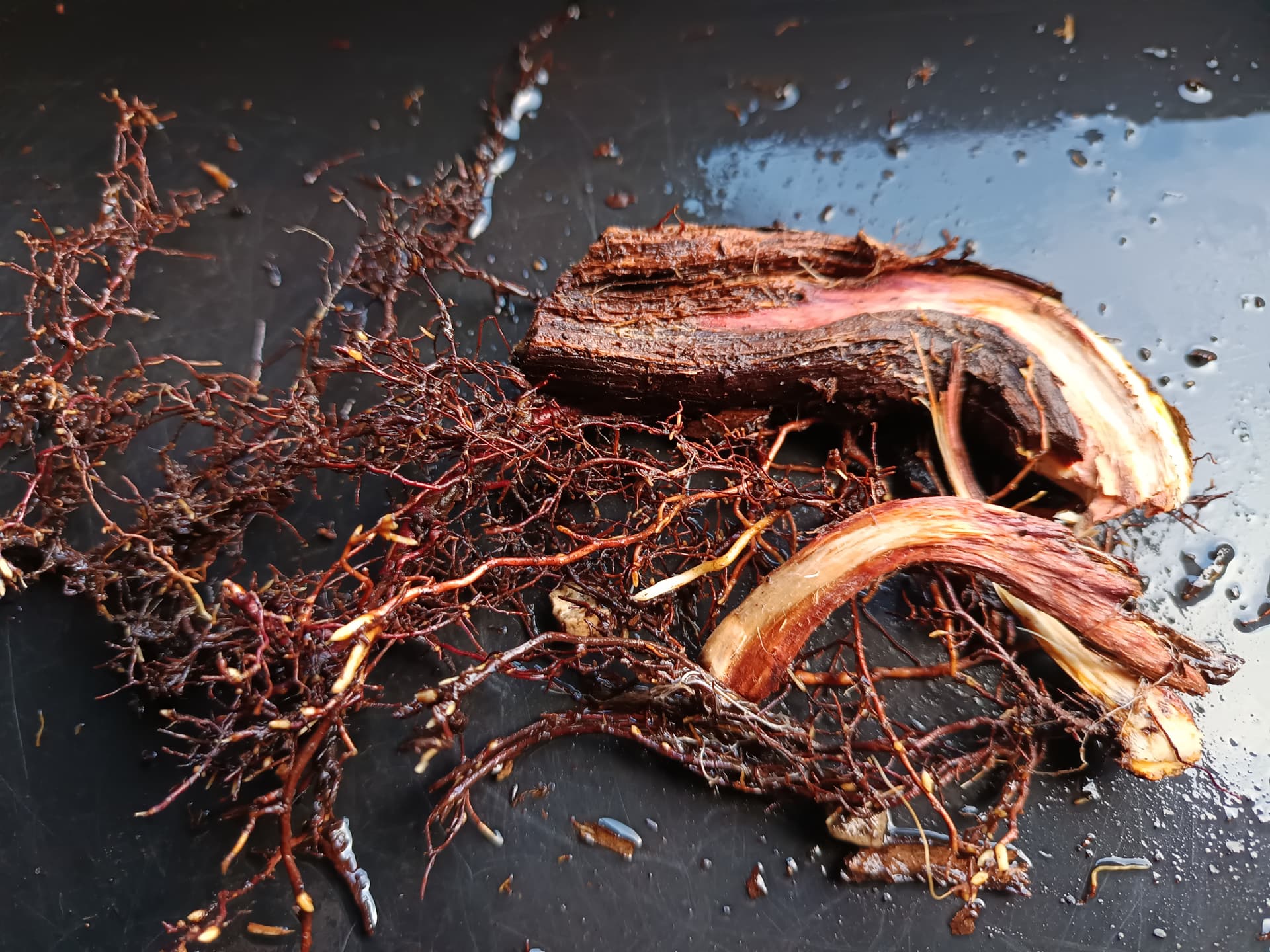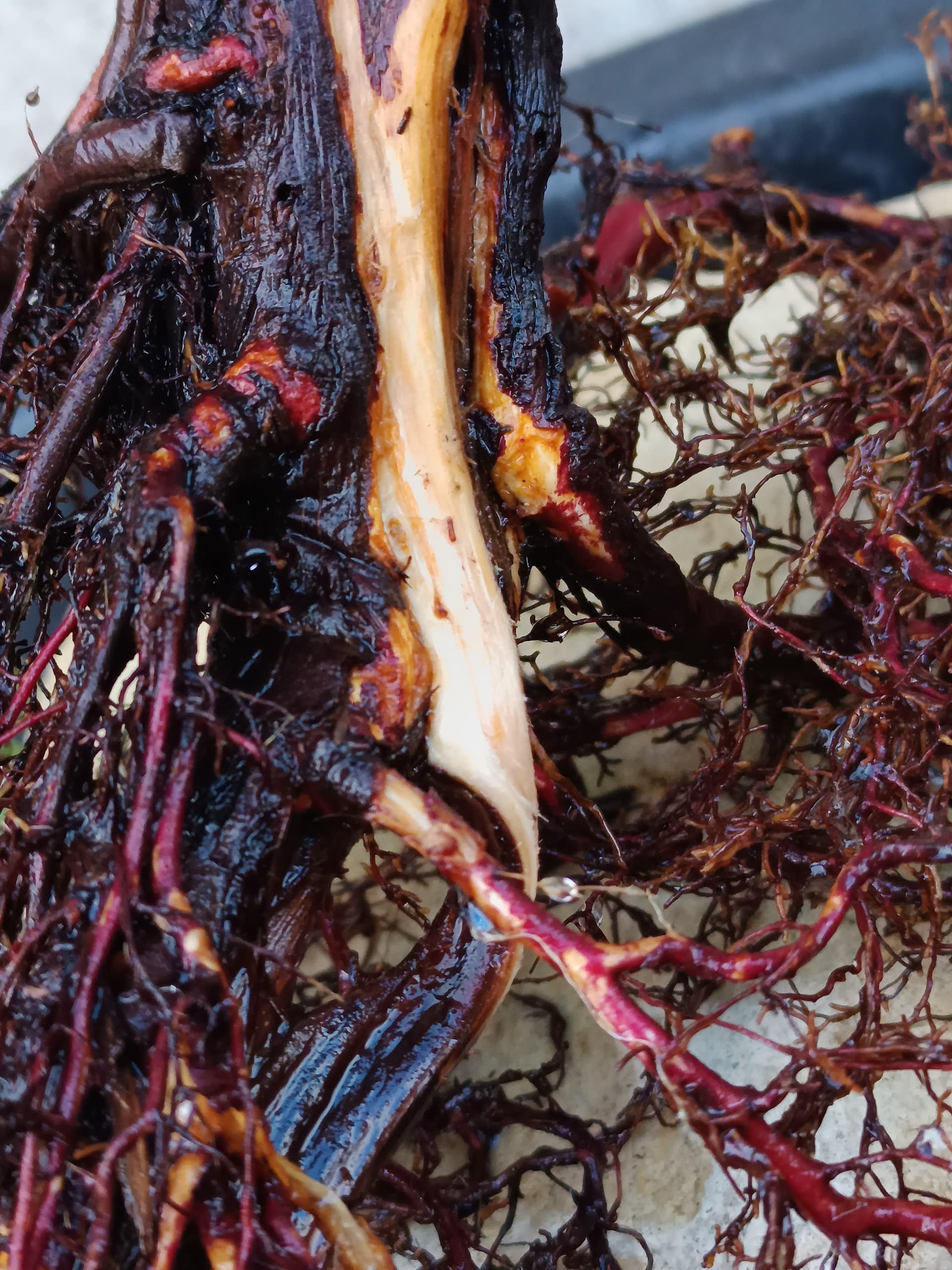 Je trouve à la base du tronc une portion enterrée d’une quinzaine de centimètres qui commence à pourrir, le tronc/racine a dû être coupé à cet endroit lors du prélèvement