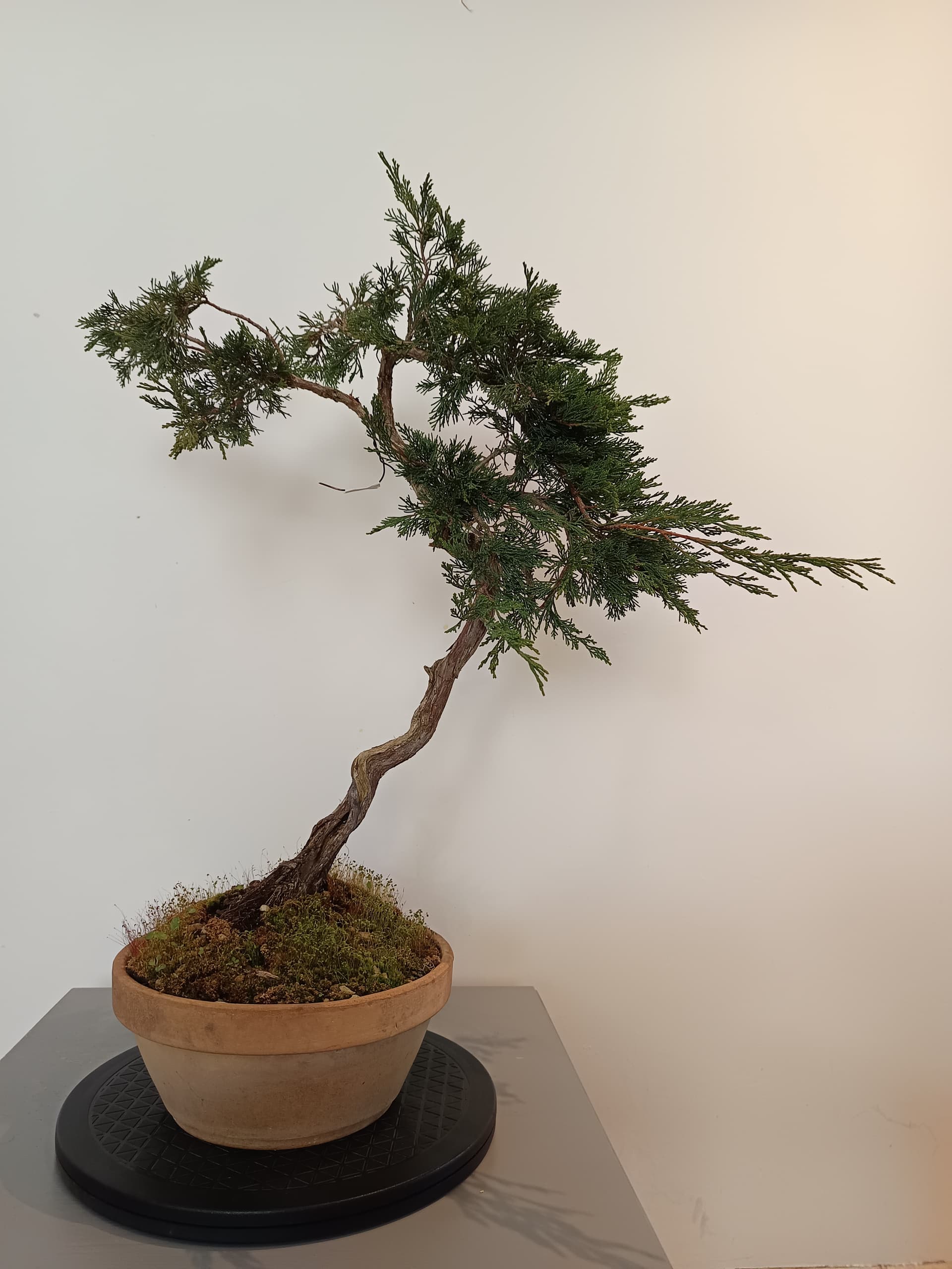Au programme pousse libre au printemps prochain, taille et mise en forme fin d’été et rempotage partiel avec bonne inclinaison et pot définitif en automne, le projet devrait être finalisé en 2026,