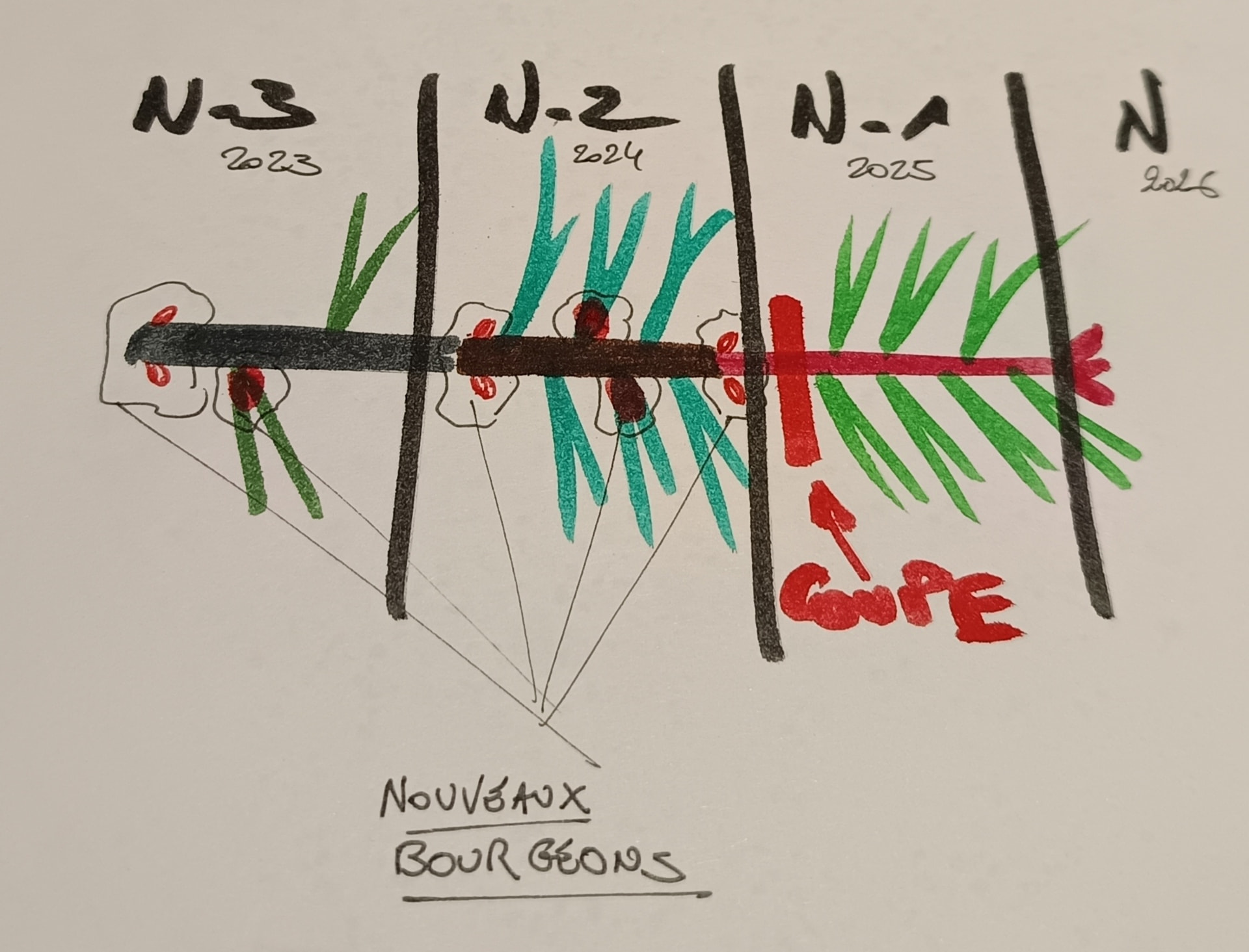 C’est à dire désaiguiller la pousse de 2025 quand celle de 2026 aura poussé ?