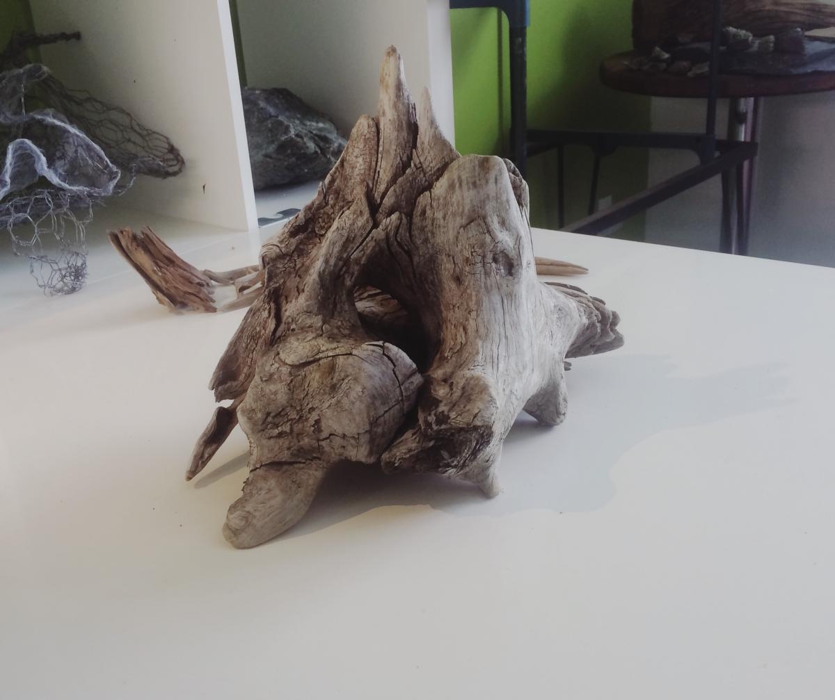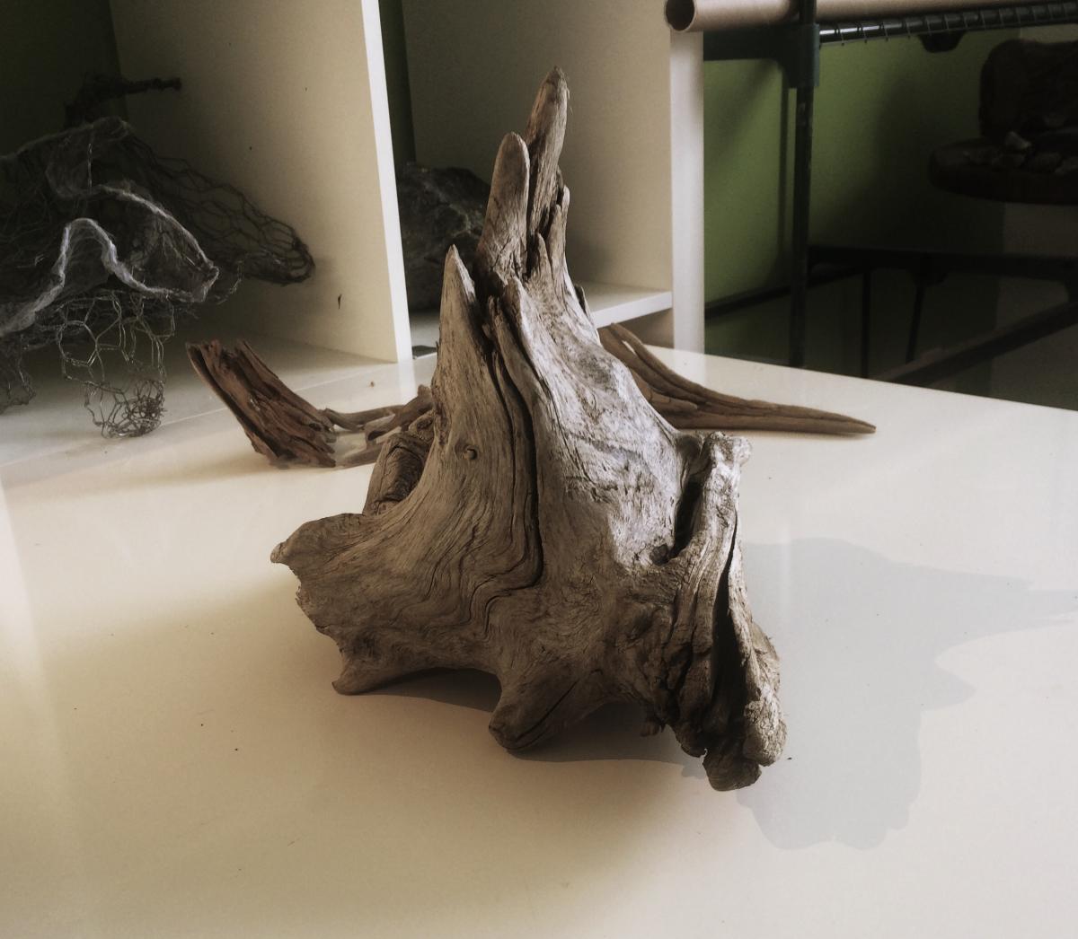 Une amie m'a donné une jolie pièce de bois flotté. Je la trouve très sculptural, on dirait presque une montagne.