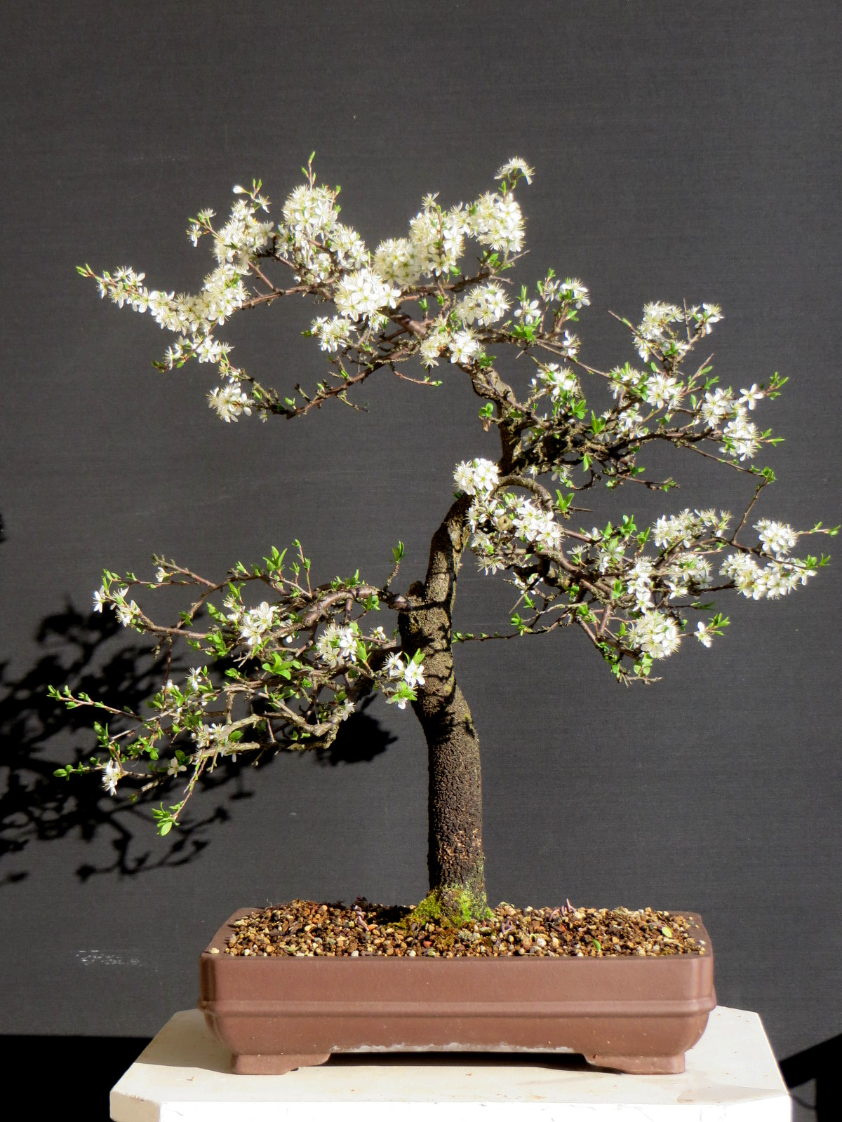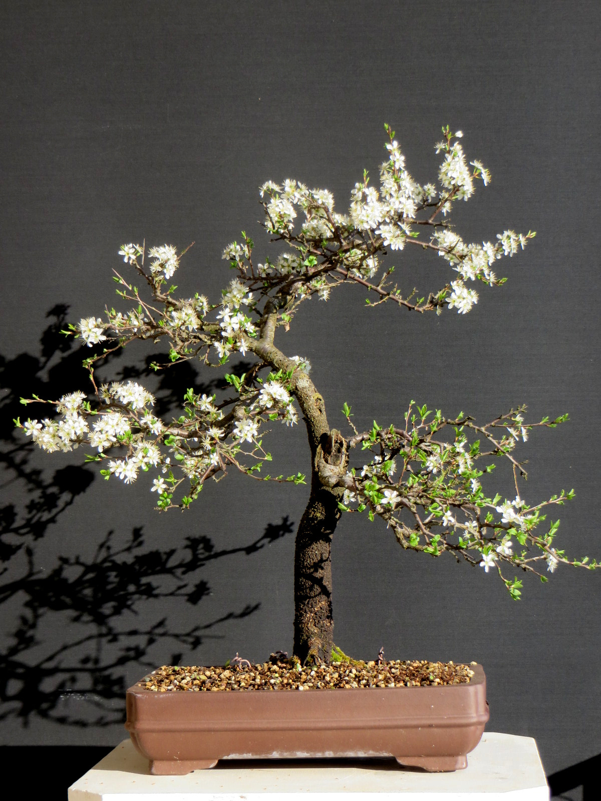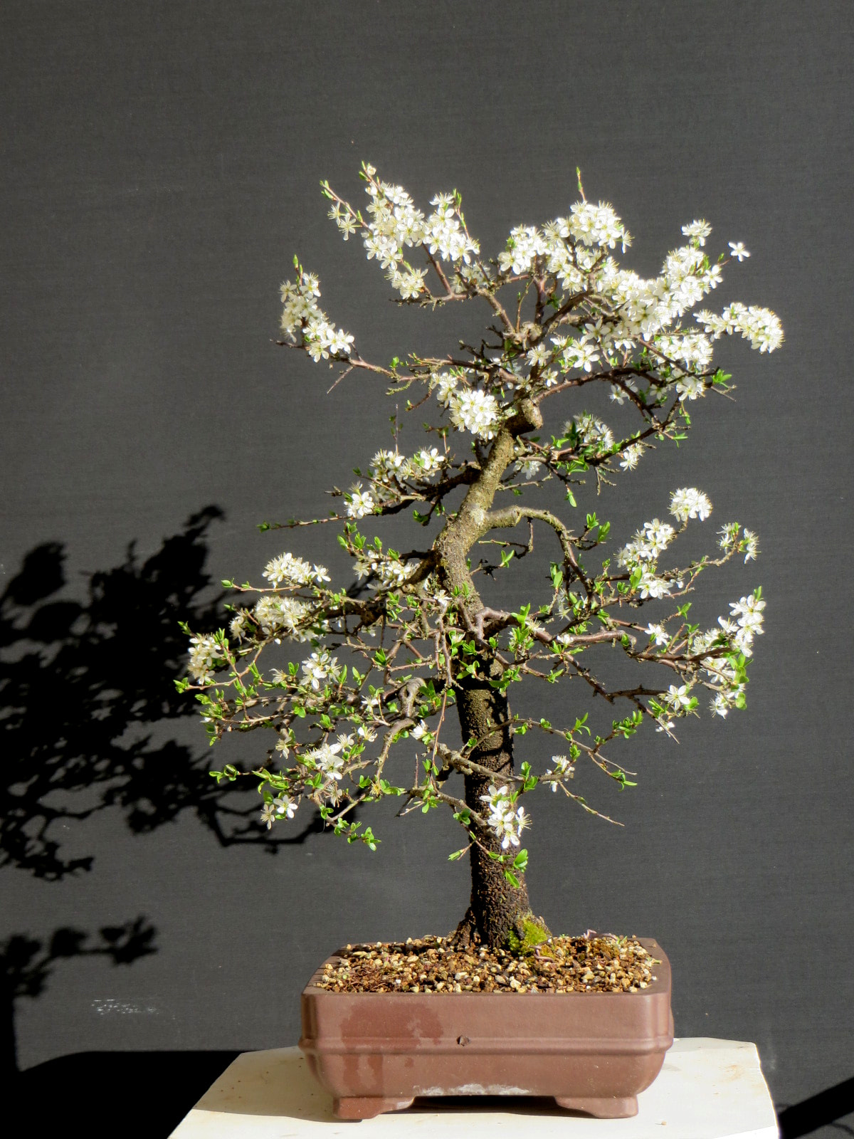 Le Prunus spinosa (Prunellier) posséderait autant d’intérêt bonsaï-istique que le légendaire Prunus mume (Abricotier du Japon). Oui, oui !! Il le dit dans le texte …. et j’approuve.